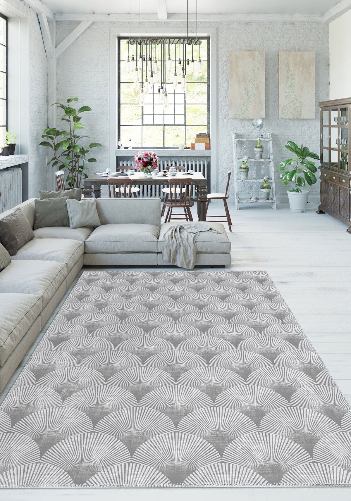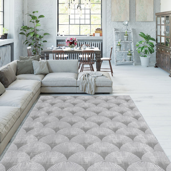 Bring a touch of sophistication to your home with the Addison Modern Silver Rug. Featuring a stylish fan-like geometric pattern in sleek silver tones, this rug offers a perfect balance between modern aesthetics and functionality. Its versatile design is ideal for various room settings, adding an elegant touch to your interior spaces.