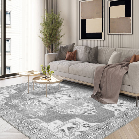 The Adrian Grey Medallion Rug combines classic design with modern practicality. Its machine-washable construction makes it easy to maintain, while the neutral grey tones and elegant medallion motif make it a standout piece in any room. Whether you're updating a living room or adding charm to your hallway, this rug offers both style and durability.