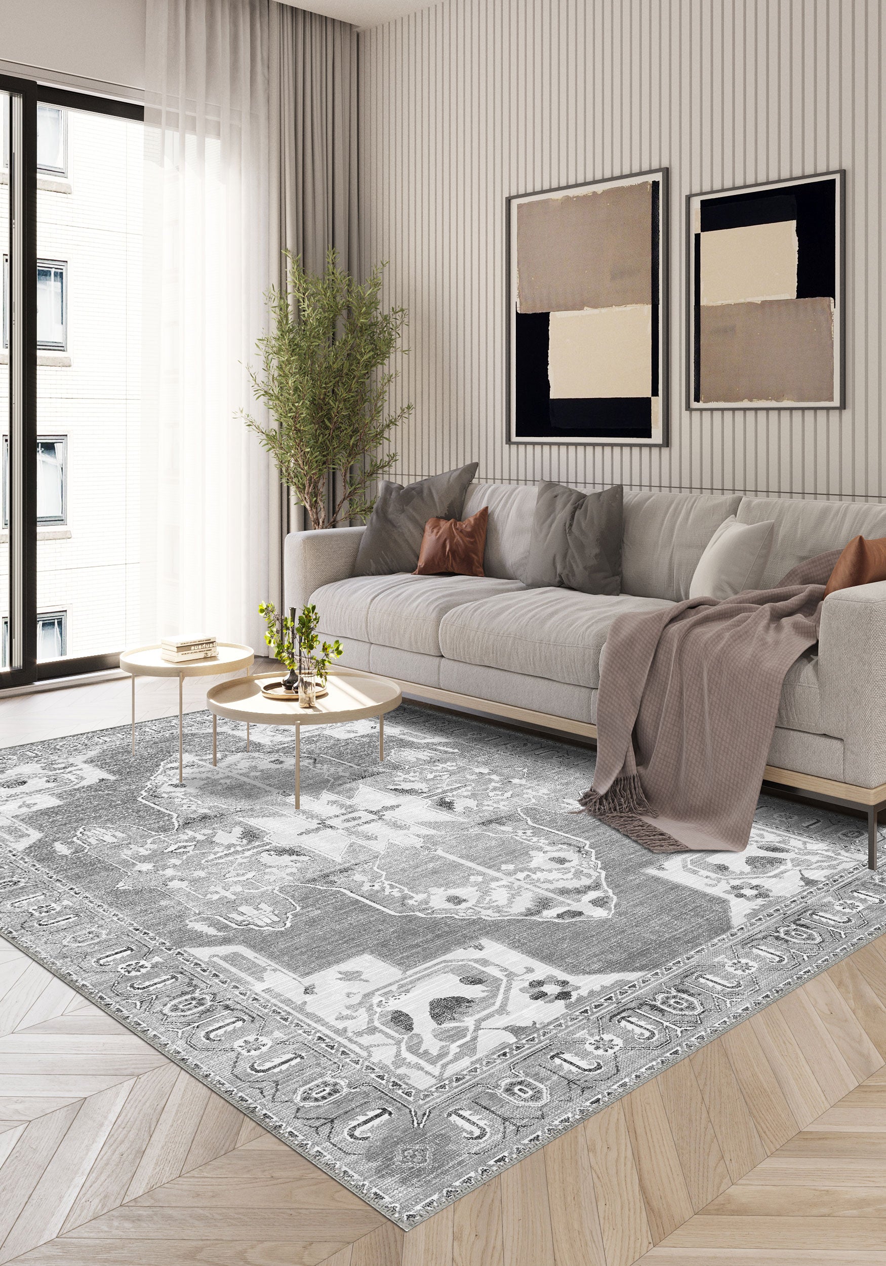 - Bedrooms: With its calming grey palette, this rug is ideal for bedrooms, adding comfort and tranquility to your personal sanctuary.