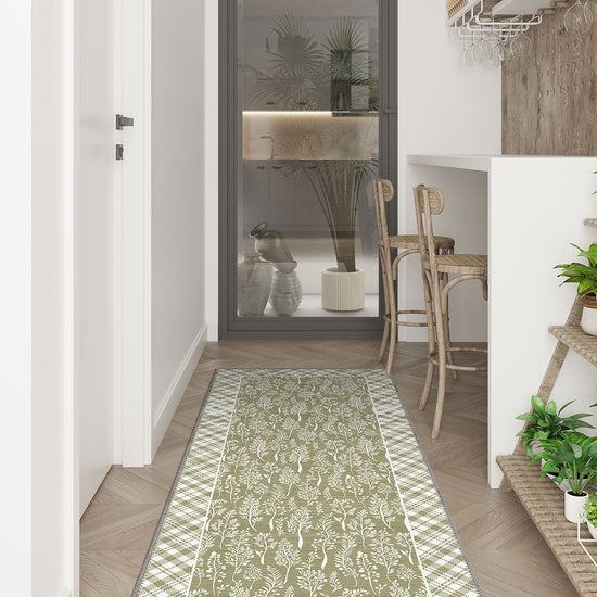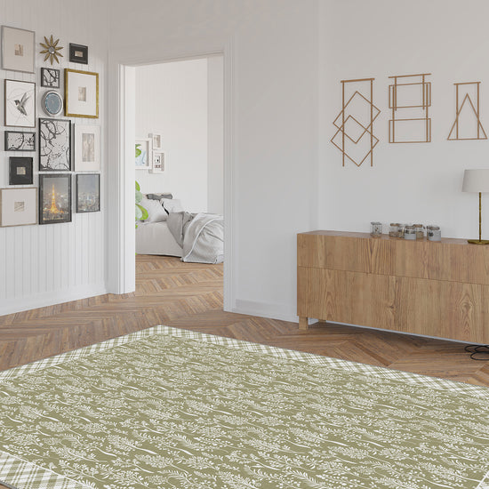 The Alder Floral Sage Green Rug brings gentle botanical beauty to your floor, with a soft vintage-inspired print of ivory florals framed by a subtle gingham border. Set against a calming sage green base, it’s a charming nod to English cottage kitchens, wildflower meadows, and the comforts of slow living.
