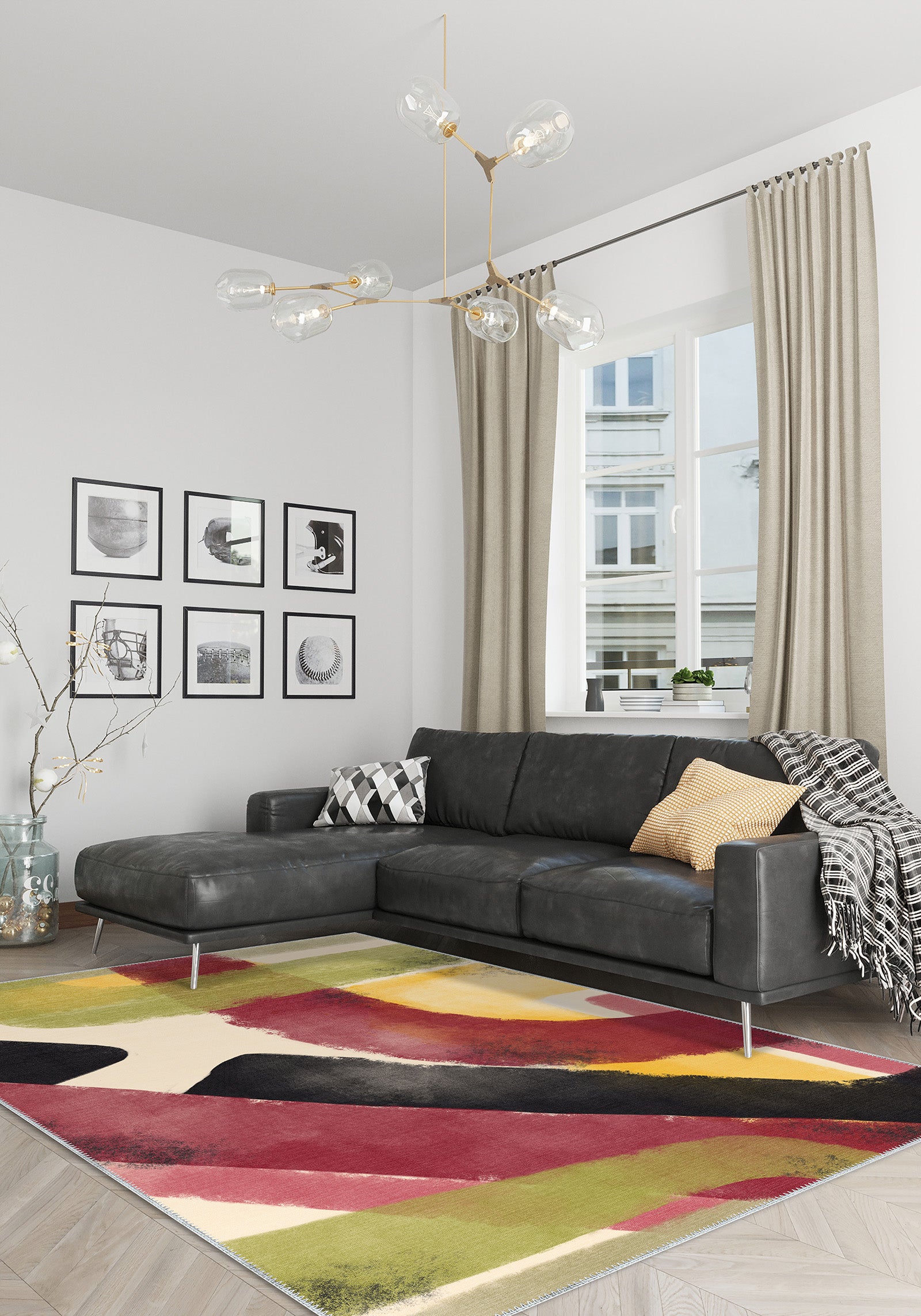 - Living Rooms: Make this rug the focal point of your modern living space, where its vibrant design adds a sense of movement, energy, and style.