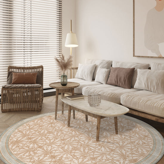 The Alexis Transitional Rug blends the best of traditional motifs with a modern flair. This beautiful rug features a delicate floral design framed by a striking Greek key border, creating a perfect balance of classic and contemporary. The warm beige and soft green tones bring an inviting feel, making it a versatile choice for any room in your home.