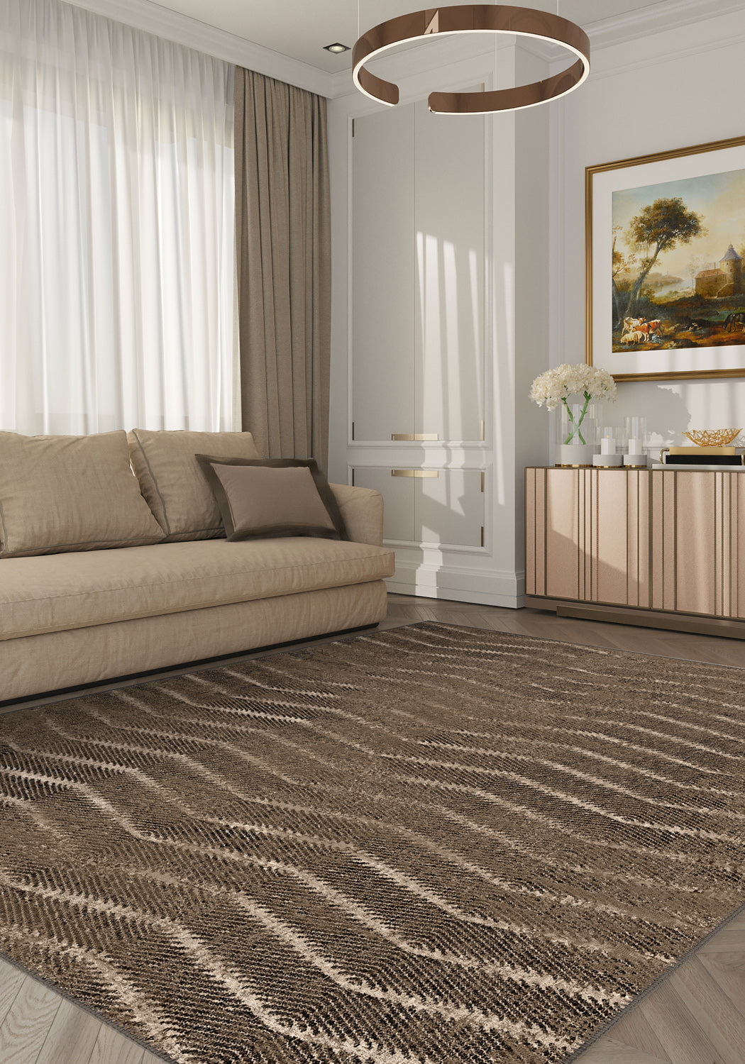 Alice Brown Modern Washable Rug – Subtle Elegance in Earthy Tones