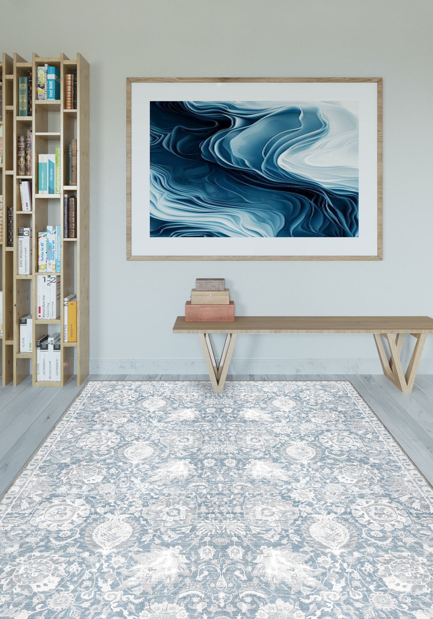 - Dining Rooms: The muted blue tones and classic design make this rug an excellent choice for formal dining areas, bringing a touch of elegance without overpowering the space.