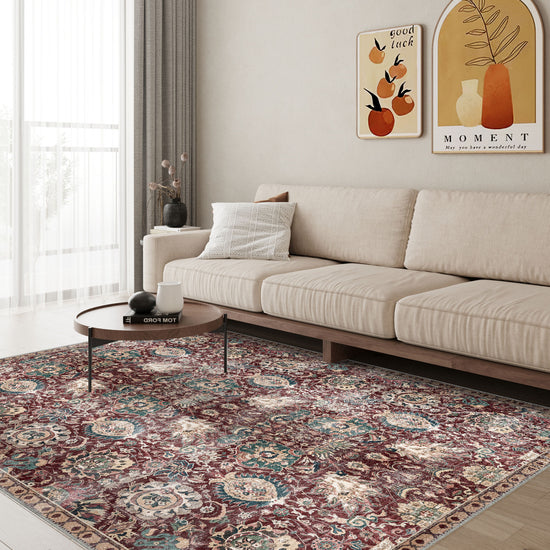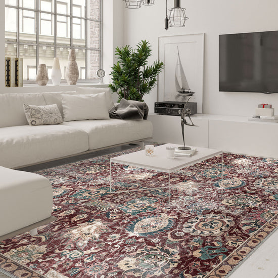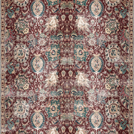 The Artemis Burgundy Oriental Rug exudes luxury and tradition with its rich burgundy tones and intricate Oriental patterns. Featuring elegant medallion and floral motifs in deep reds, soft creams, and subtle greens, this rug brings a sense of opulence to any room. Its vintage-inspired design, coupled with modern practicality, makes the Artemis Rug a beautiful choice for adding both grandeur and comfort to your home.