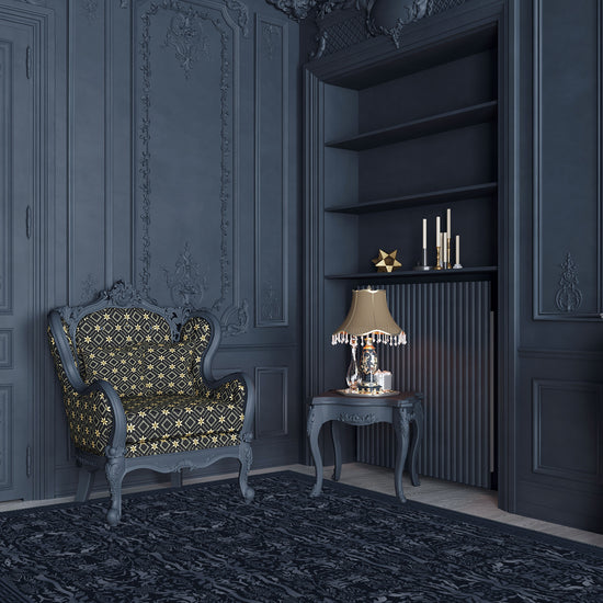 Aveline is made for bold interiors—bedrooms wrapped in velvet, formal sitting rooms painted in deep hues, or minimalist spaces in need of a grounding centrepiece. Its pattern doesn’t shout; it smoulders. Sophisticated and seductive, it lends depth and dimension without ever overpowering.