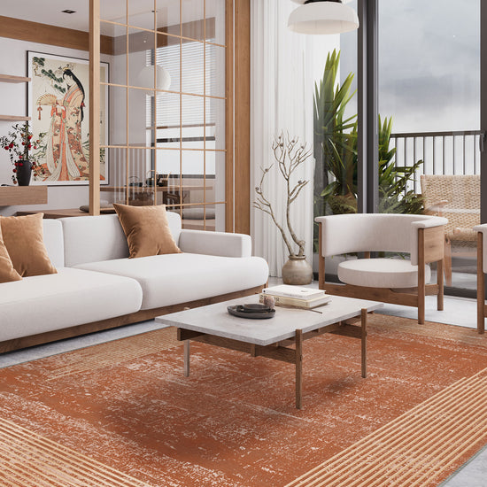- Bold Modern Design: The striking linear pattern, combined with a rich orange shade, makes this rug perfect for adding a touch of bold sophistication to any interior.