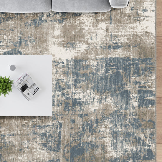 The Azure Abstract Neutral Rug combines a modern abstract design with neutral tones of blue, beige, and cream, creating a sophisticated and versatile piece. Perfect for contemporary and minimalist interiors, this rug offers a subtle yet artistic aesthetic that enhances any space without overwhelming the decor. Its distressed pattern adds a touch of texture, making it a standout piece that complements a variety of interior styles.