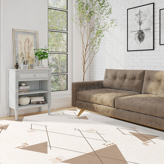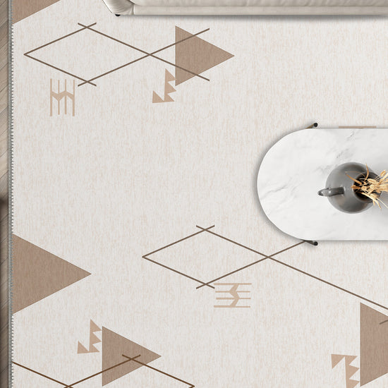 The Beni Ourain Cream Japandi Rug is a fresh take on an iconic North African aesthetic. Rendered in delicate shades of warm taupe over an ivory base, its angular motifs and diamond linework evoke centuries-old Berber symbolism—reimagined here in a softer, lighter form for the modern Japandi-inspired home.
