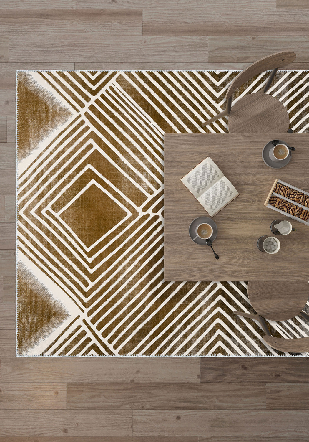 • Eclectic & Transitional: The warm earthy tones and geometric pattern make this rug versatile enough to blend into eclectic and transitional spaces, adding character and depth.