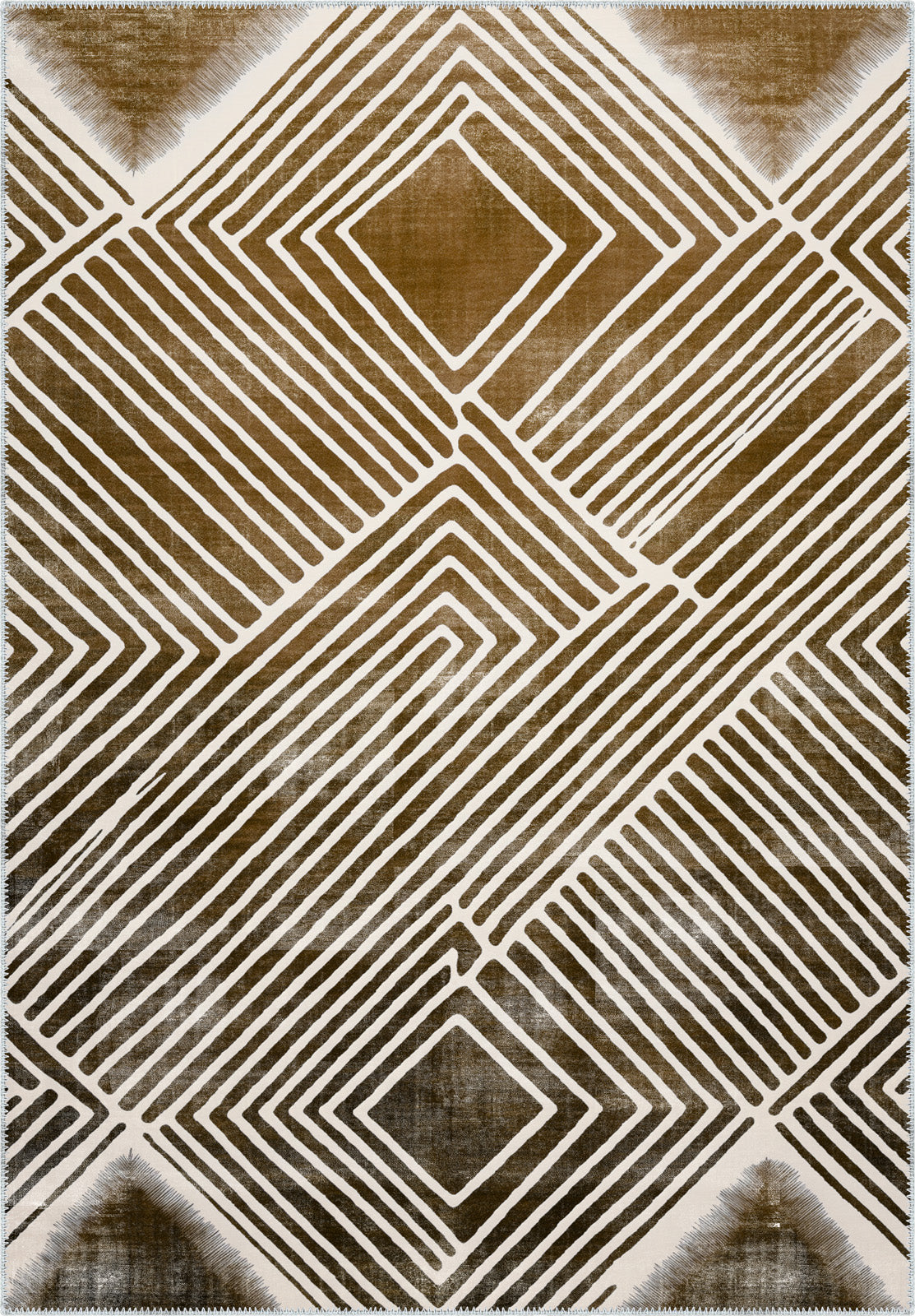 The Bram Modern Striped Rug features a striking geometric design with bold, clean lines that make it the perfect centerpiece for modern interiors. Its rich, earthy tones and intricate diamond patterns create a dynamic yet balanced look, making it ideal for spaces that need a touch of contemporary style and sophistication. This rug is designed to complement minimalist, eclectic, or modern decor while adding warmth and texture.