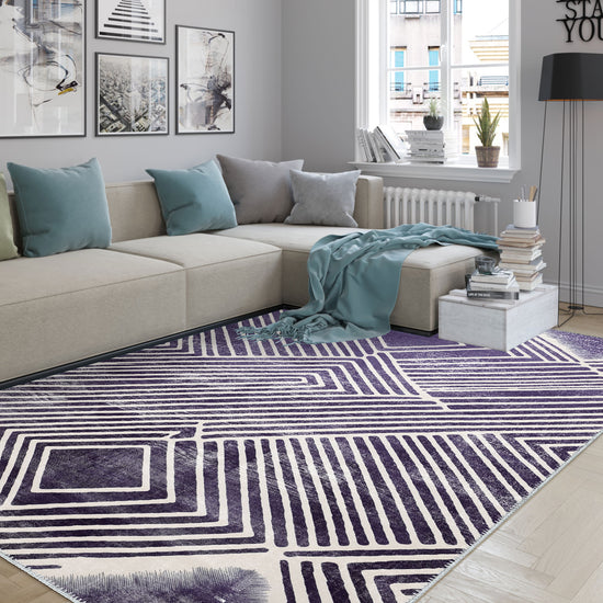 The Bram Purple Modern Rug brings a bold, regal touch to contemporary interiors. Its modern geometric design, paired with deep purple tones, offers a striking balance between elegance and cutting-edge style. Perfect for adding a pop of color to any room, this rug transforms spaces with its vibrant hue and dynamic pattern.