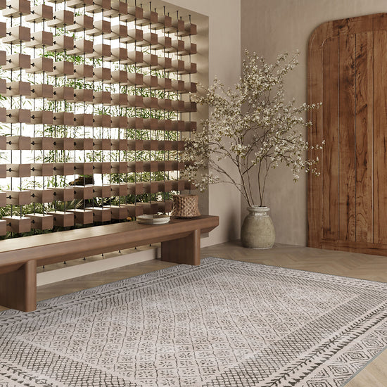 The Calyra Bordered Beige Rug is a versatile addition to any home, fitting seamlessly into a variety of rooms: