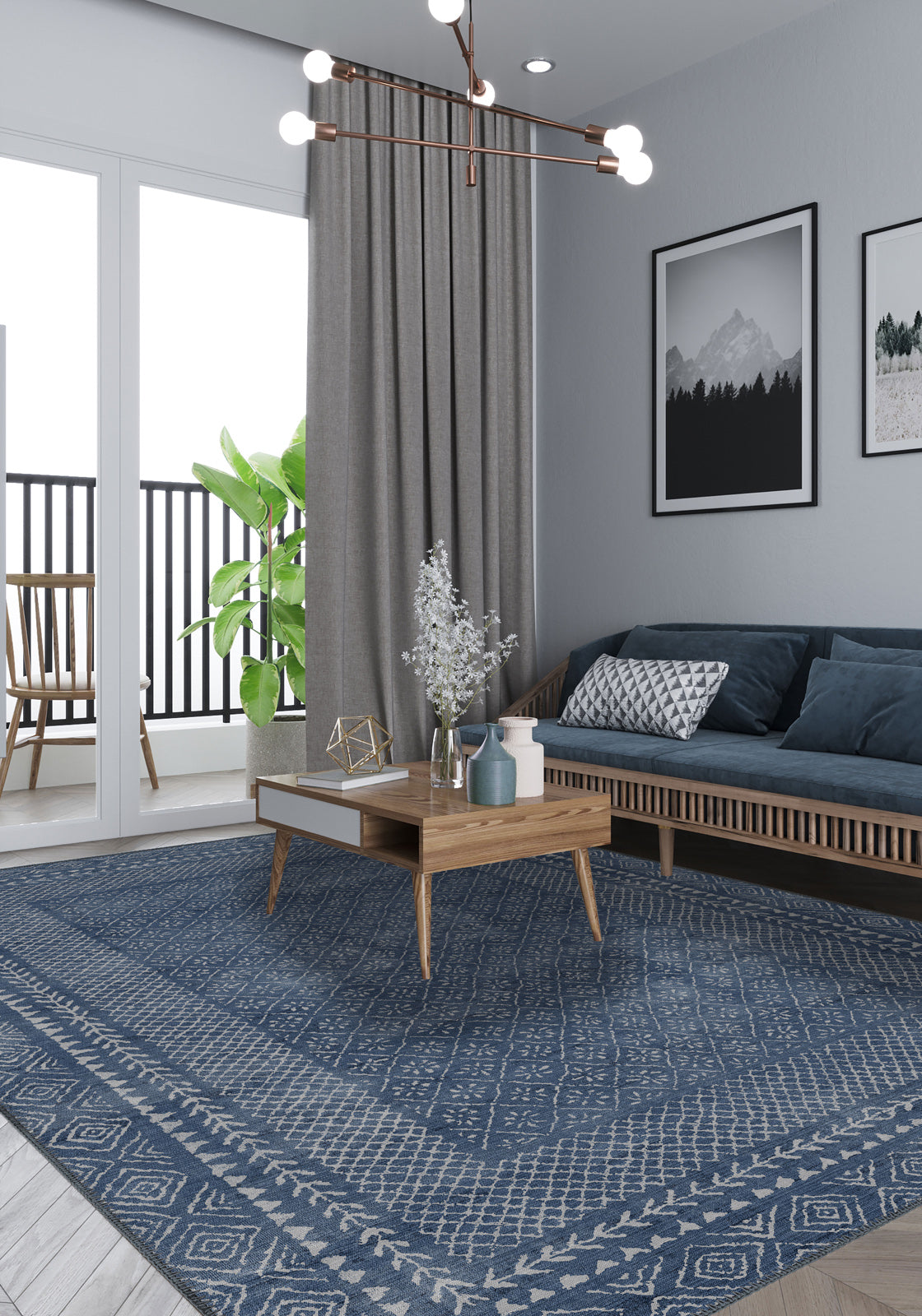 • Living rooms – A bold centerpiece that anchors your furniture with rich navy tones