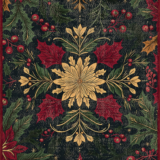 Celebrate the magic of the holiday season with the Celia Festive Christmas Rug. This beautifully designed rug captures the warmth and charm of Christmas, featuring intricate patterns of golden poinsettias, red holly leaves, and festive berries. The rich color palette of deep reds, greens, and golds makes it the perfect accent piece for any festive home décor.