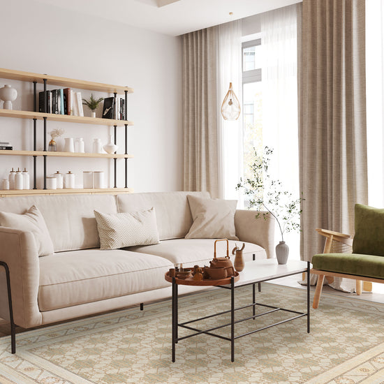 • Timeless Appeal: This rug's vintage look, combined with its modern color palette, allows it to fit seamlessly into both contemporary and classic homes. The light, neutral tones ensure it enhances your decor without overwhelming the space.