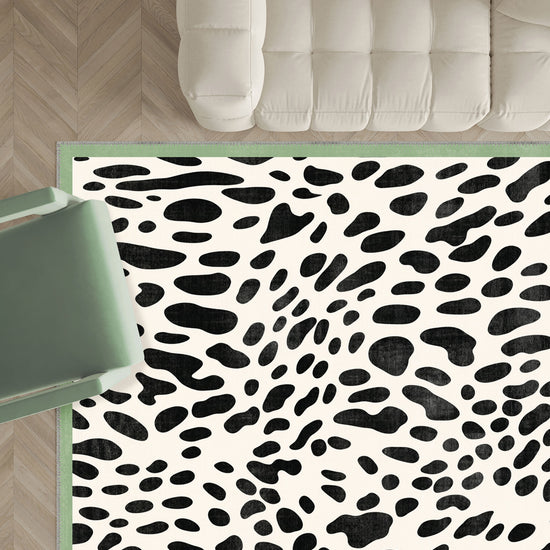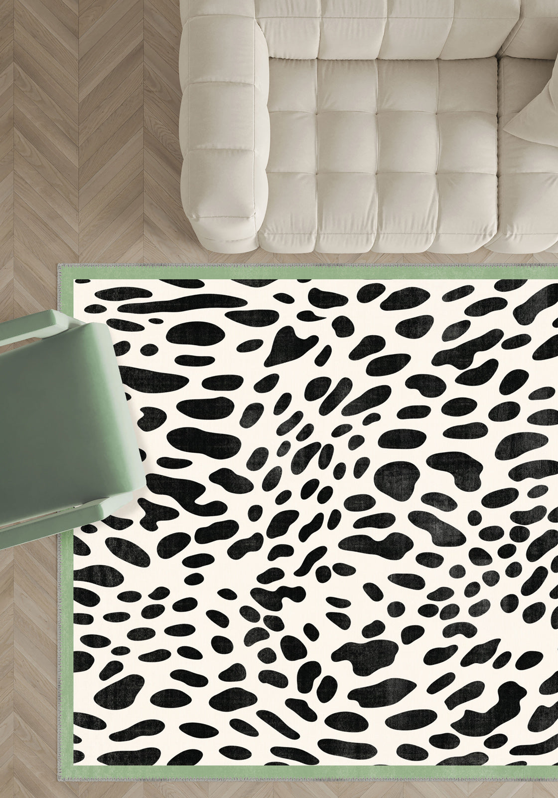 The Dalmatian Green Bordered Animal Print Rug brings the iconic Dalmatian-inspired black and white print into a new realm with its fresh green border. This rug blends bold design with a nature-inspired accent, perfect for adding a touch of playfulness to any room while keeping the aesthetic modern and stylish.