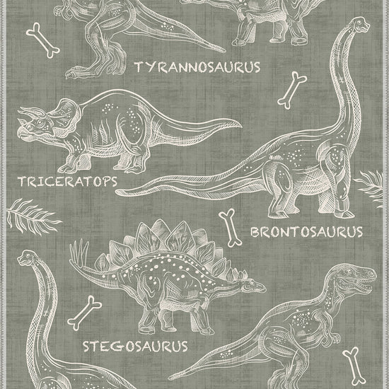 Roar into the world of prehistoric wonder with the Daxon Green Dinosaur Rug. Designed in soothing sage tones with chalky white illustrations, this rug brings together beloved dinosaurs—like Stegosaurus, Tyrannosaurus, Brontosaurus, and Triceratops—making it perfect for little dino lovers with a soft spot for natural style.