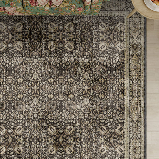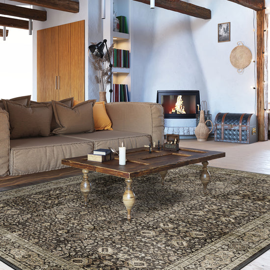 This is a traditional rug with depth – intricate florals, delicate diamond motifs and a refined bordered frame that grounds a room with intention. The brown tones are layered and nuanced, not flat or harsh, giving it that slightly vintage, gently faded look we interior designers adore for creating warmth without heaviness.