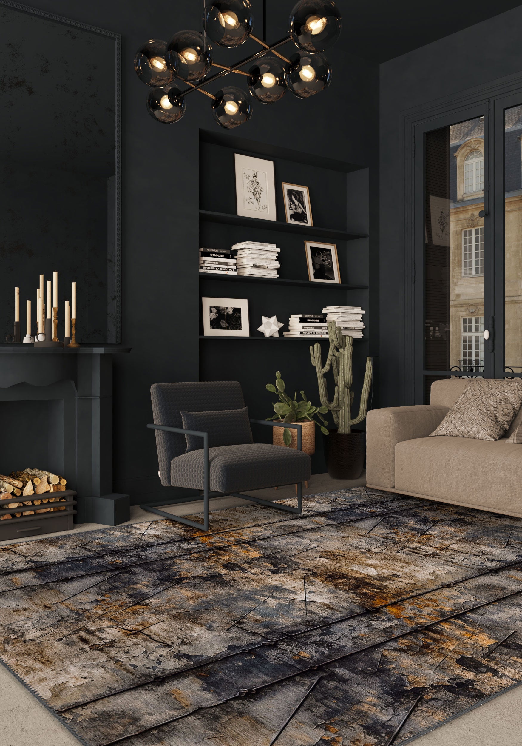 What sets this rug apart isn’t just the style—it’s the way it effortlessly channels **urban moodiness into something remarkably liveable**. If your aesthetic thrives on contrast—think **soft velvet sofas against rough concrete**—this is the **statement rug** that brings it all together without trying too hard.