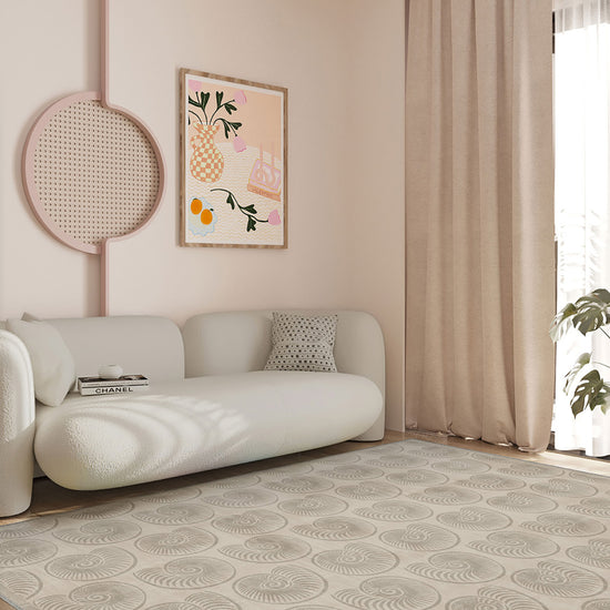 The Elara Modern Cream Rug brings sophisticated modern design into your home, featuring a refined pattern of swirling, geometric shells. With its soft cream tones and intricate details, this rug provides an elegant yet understated look that blends seamlessly into a variety of interior styles.