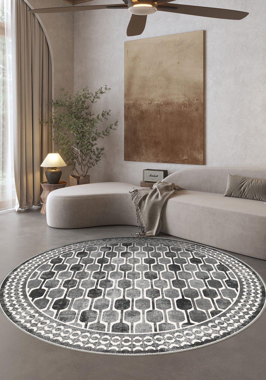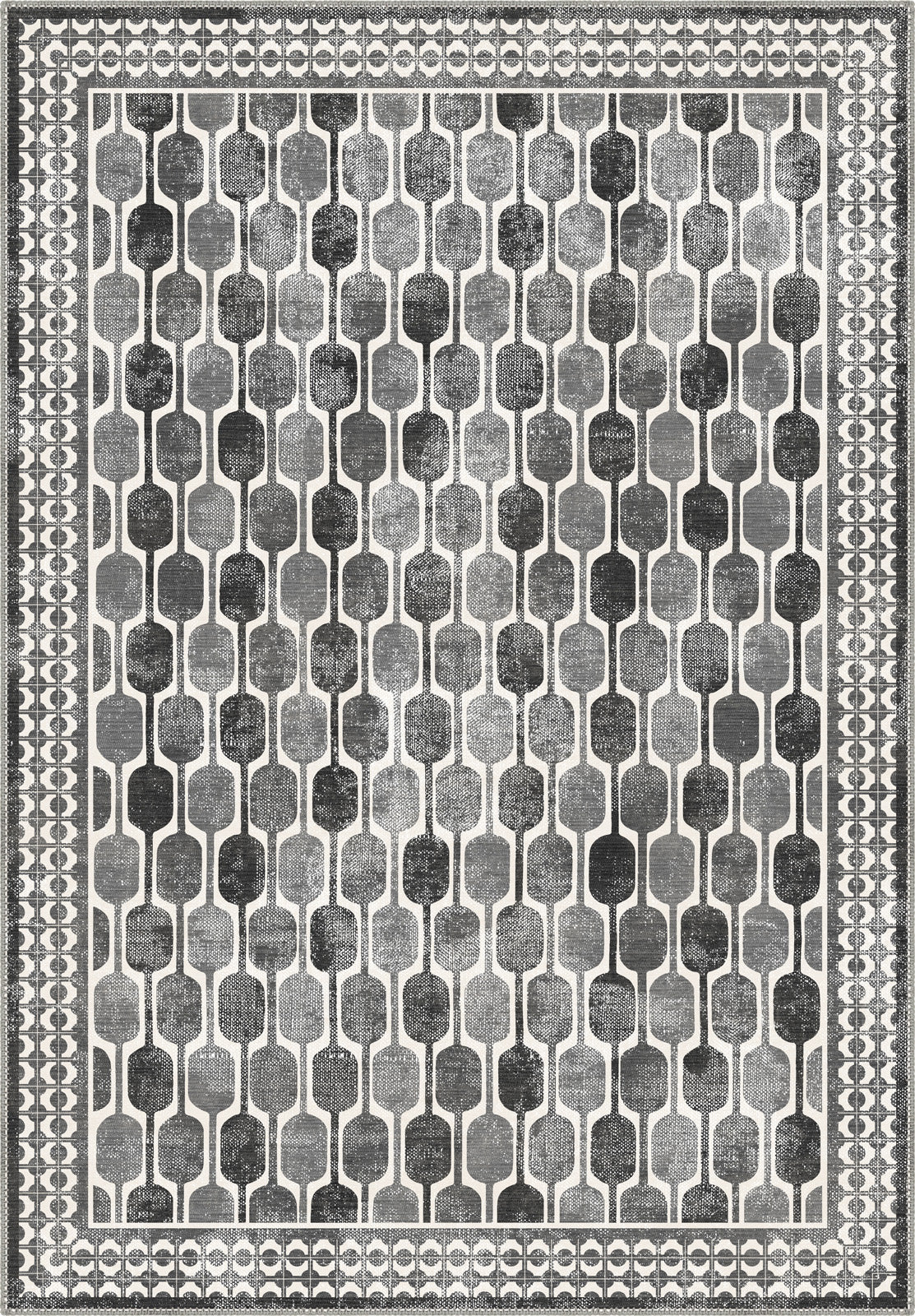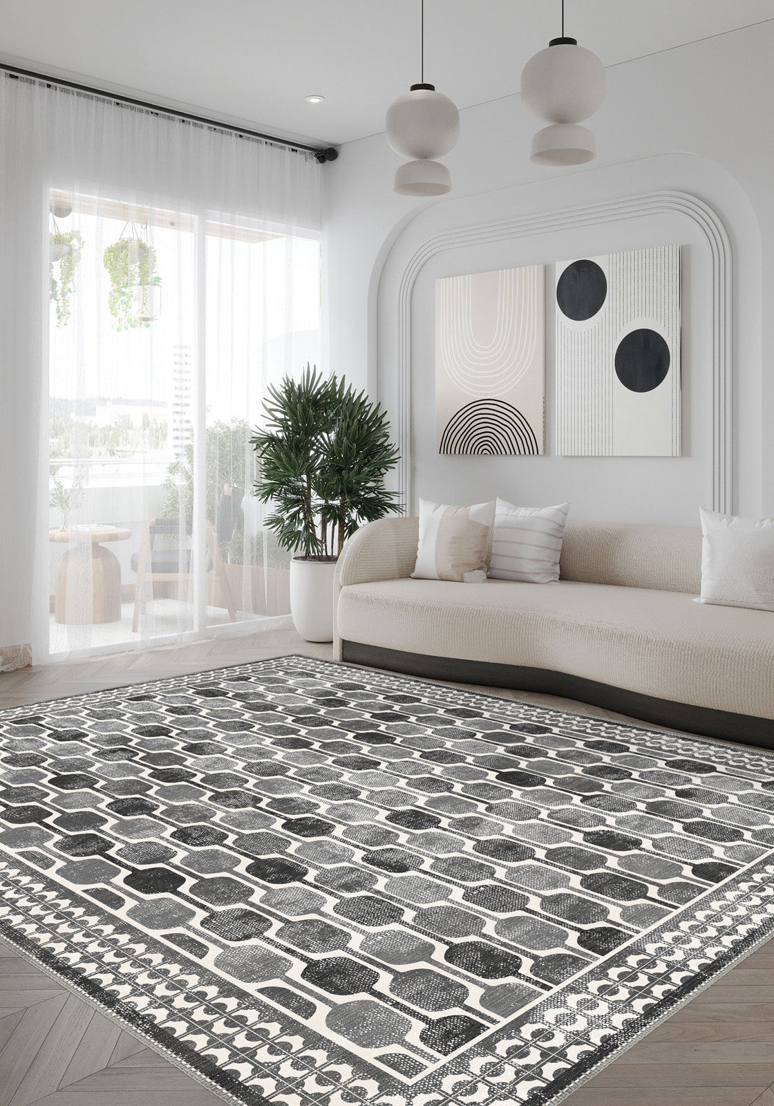 - Stylish geometric pattern in versatile shades of grey and white