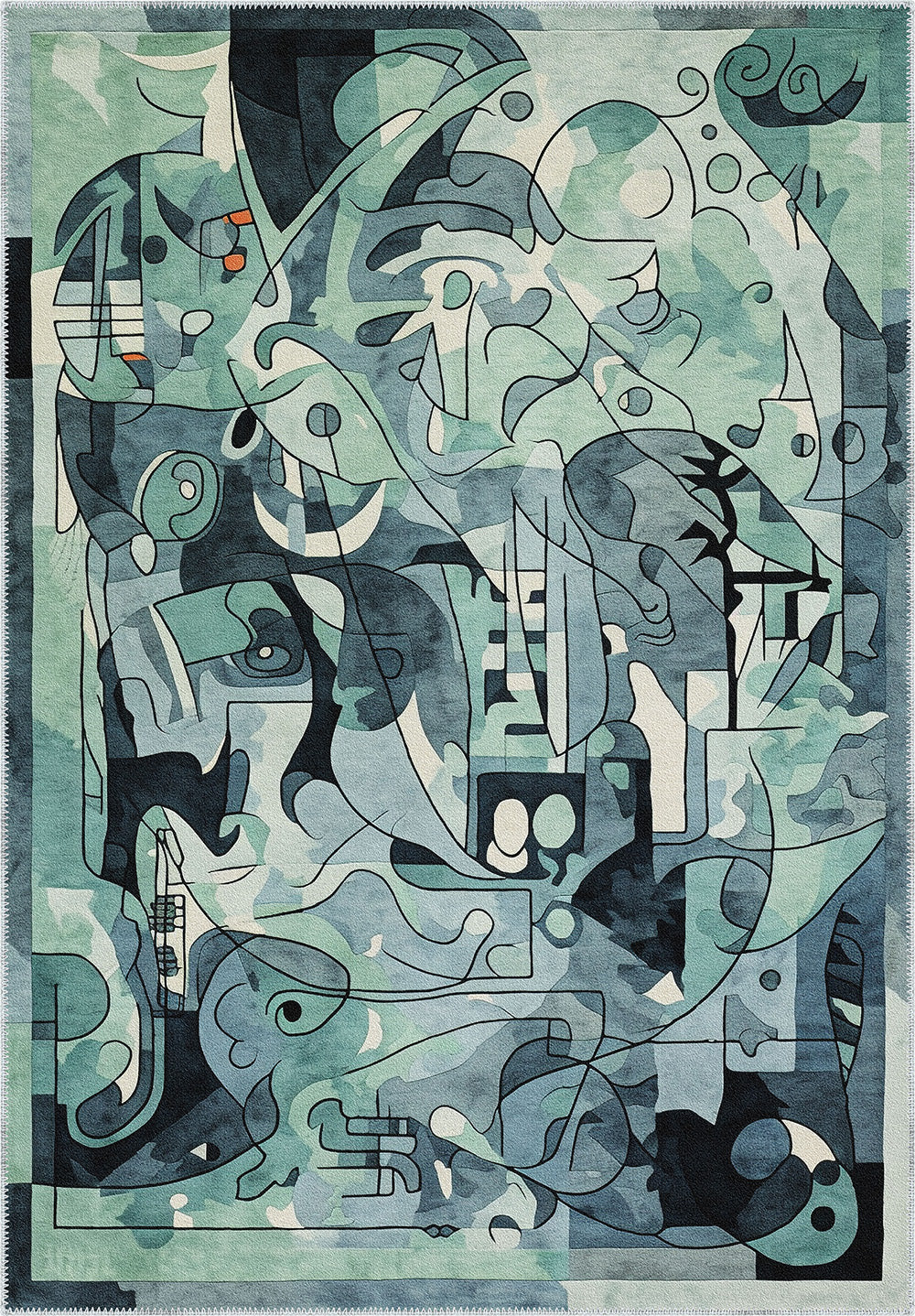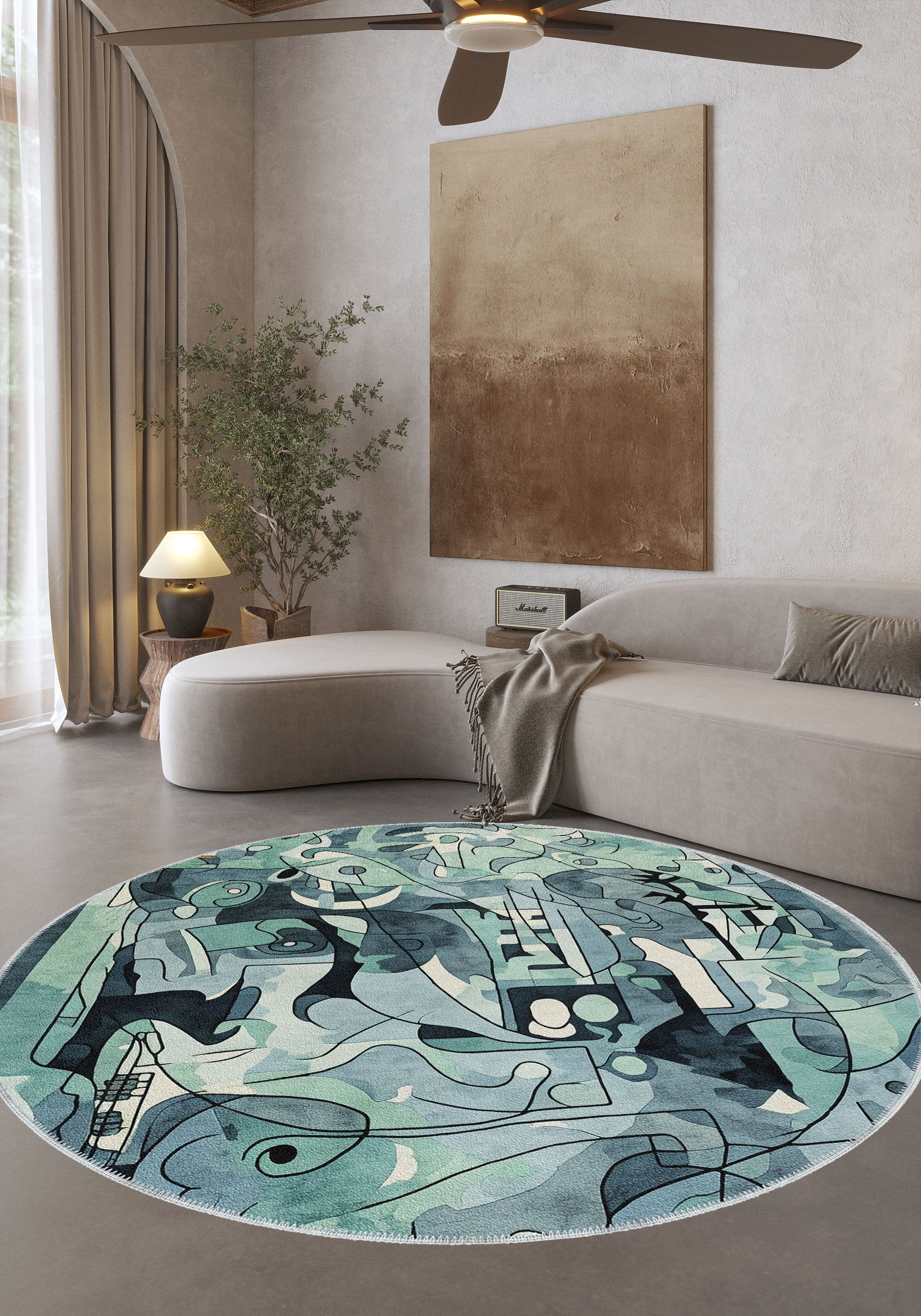 The Elvaron Modern Washable Rug is a masterpiece that brings an artistic flair to any space. Featuring a unique abstract design in soothing shades of teal, navy, and cream, this rug provides a dynamic visual effect that elevates the style of modern interiors. Its washable design makes it as practical as it is stylish, perfect for homes that blend functionality with contemporary aesthetics.