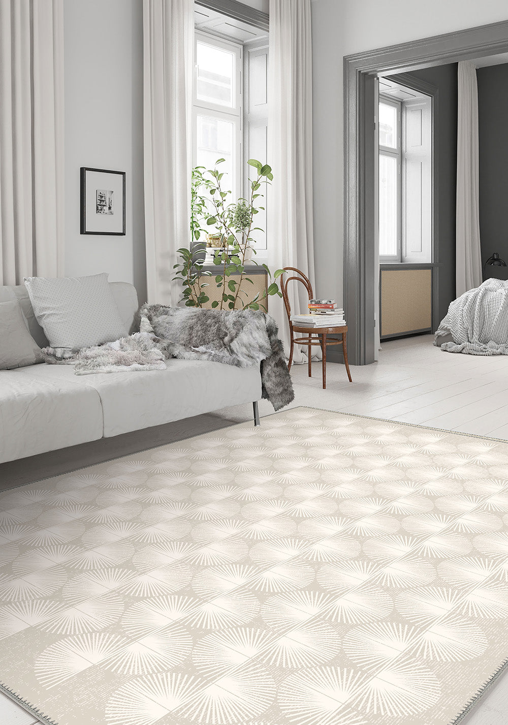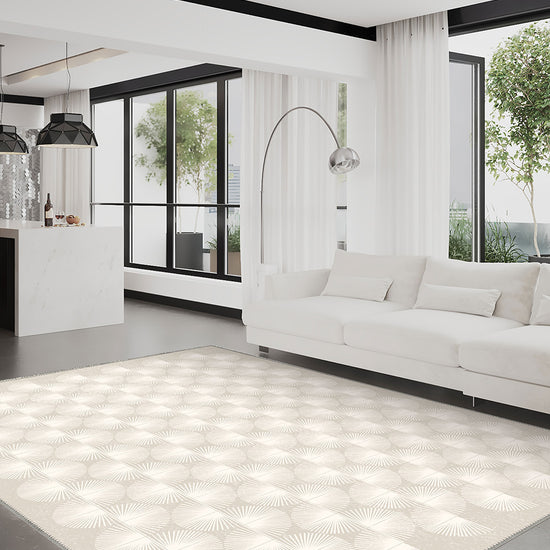 - Contemporary: The cream palette and geometric pattern bring a refined touch to contemporary spaces.