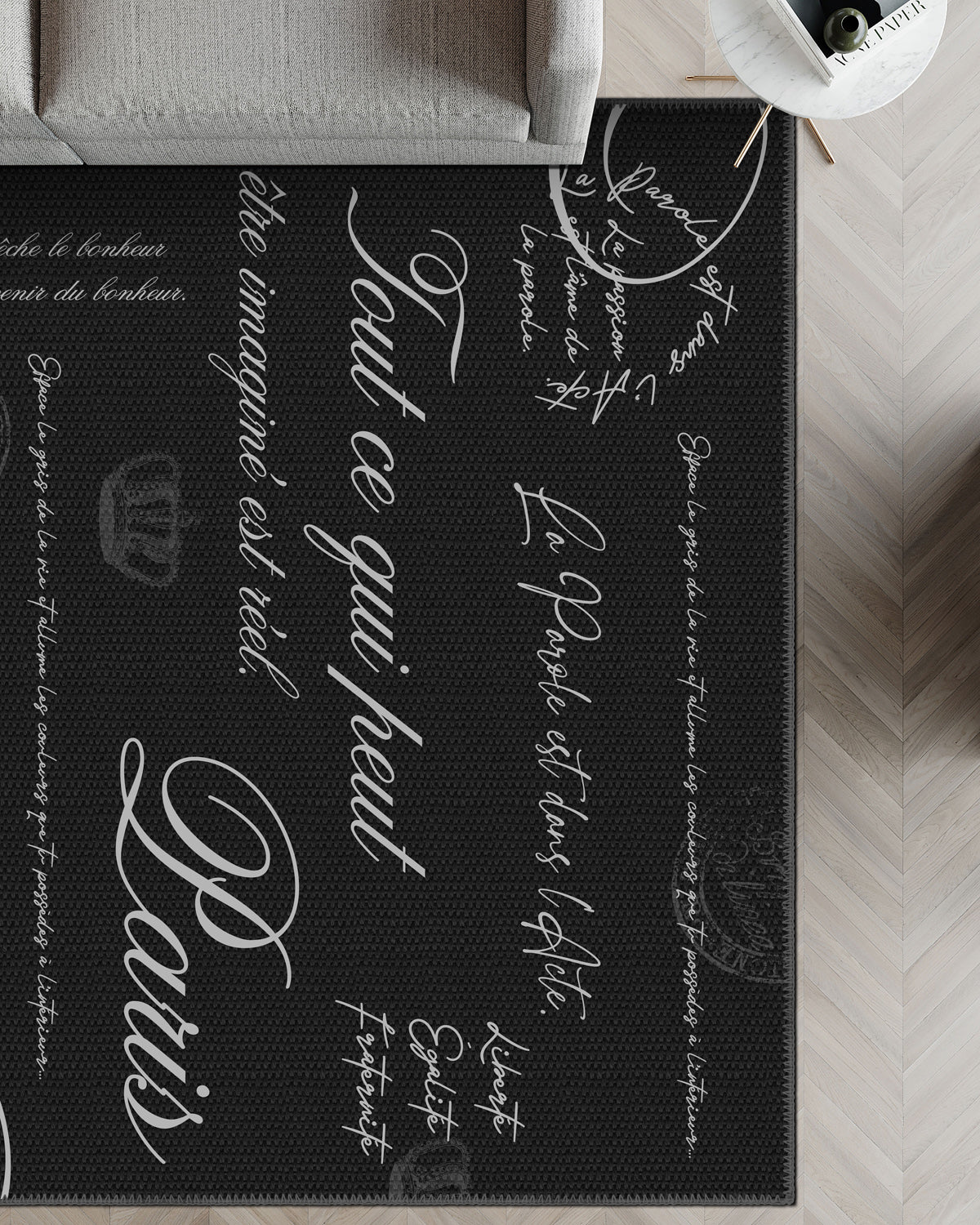 Emeric Parisian Document Rug – A Love Letter in Monochrome