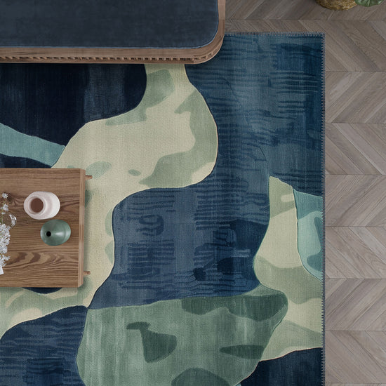The Evander Modern Blue Rug showcases a striking blend of abstract patterns and bold shades of blue and green. This modern rug is perfect for those looking to make a statement in their home while maintaining a sleek and contemporary feel. Its unique pattern and colour combination offer both depth and texture, making it a standout piece in any room.