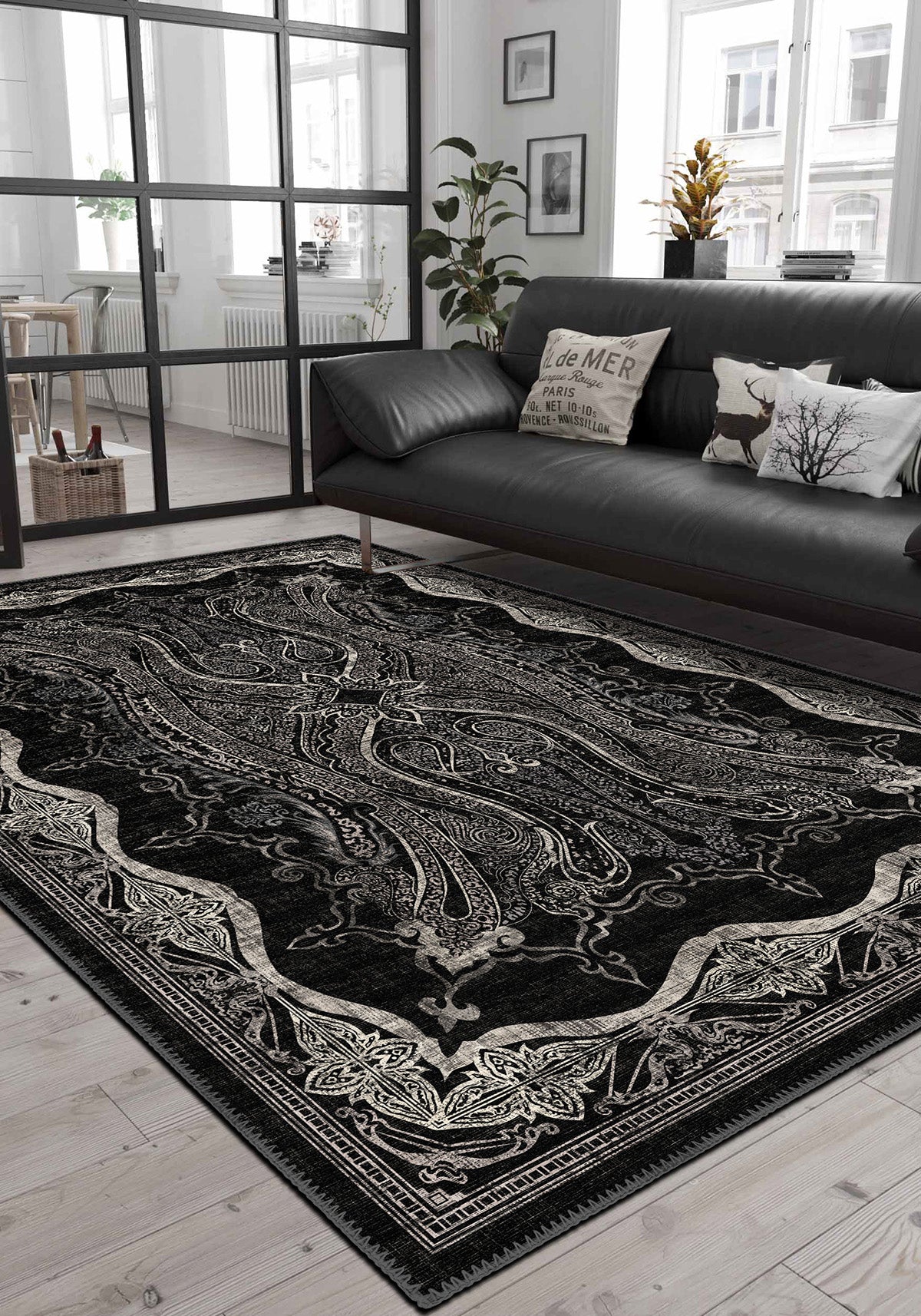 The Farid Black Isfahan Rug belongs to our washable rugs collection, offering the timeless beauty of antique Oriental rugs with the practicality modern homes require.
