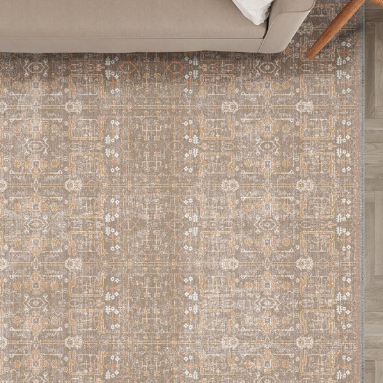 The Gaia Washable Beige Rug combines the subtle sophistication of classic design with the practical benefits of modern technology. Featuring an intricate, vintage-inspired pattern in soft beige tones, this rug enhances the warmth and style of any room while offering easy maintenance with its fully washable construction.