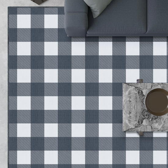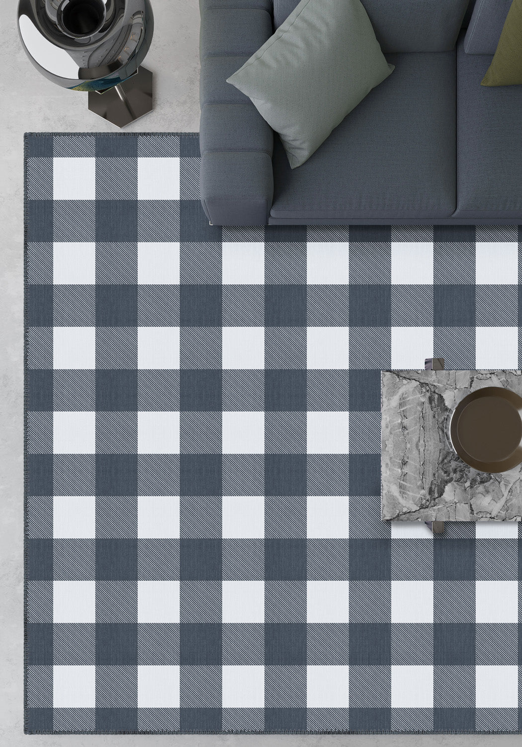 - Bold Navy Checkered Design: Featuring a striking navy and white checkered pattern, this rug blends traditional geometric style with a modern color twist.