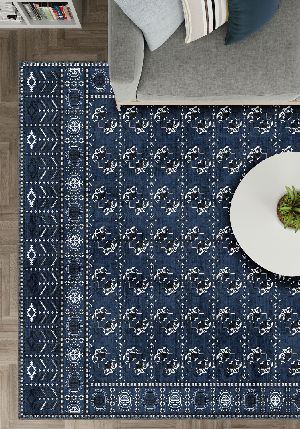 Every element of this rug whispers tradition, but the deep navy and washability shout modern lifestyle. Its beauty is in the balance – soft underfoot yet practical enough for daily life.