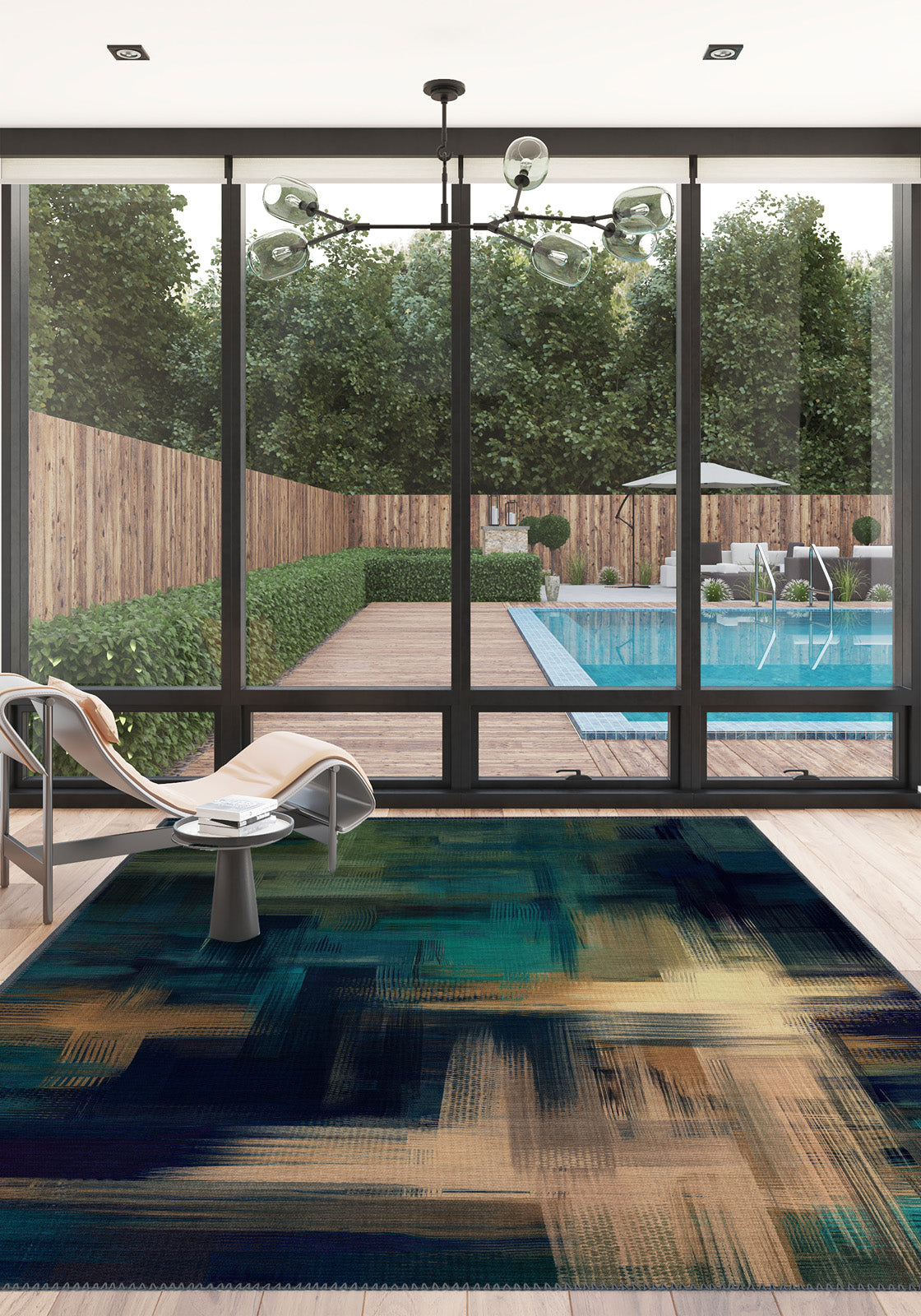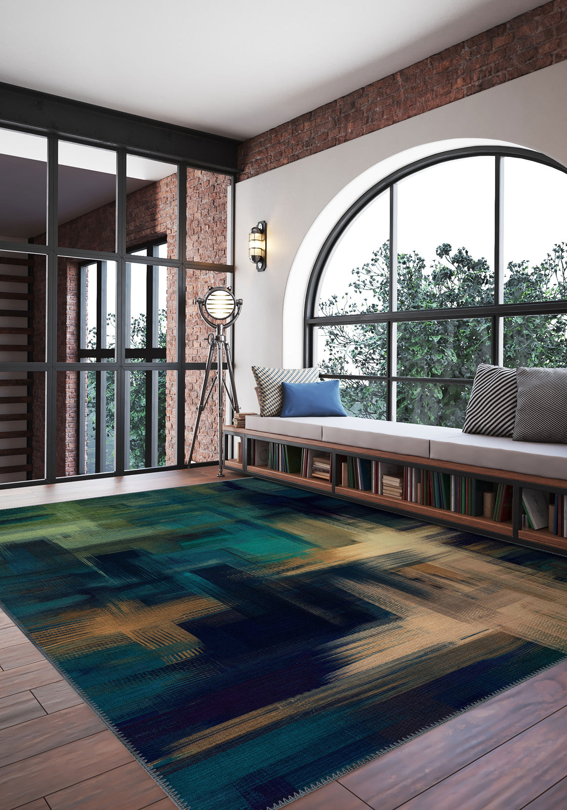 - Layered Lighting: Use warm lighting to highlight the rug's depth and color variation, enhancing its visual impact.
