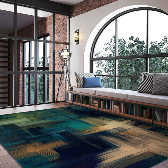 Enliven your home with the Kasen Abstract Colourful Washable Rug. This vibrant and contemporary rug showcases a blend of deep greens, blues, and earthy tones, creating an abstract masterpiece for your floor. Ideal for adding an artistic vibe to modern interiors.