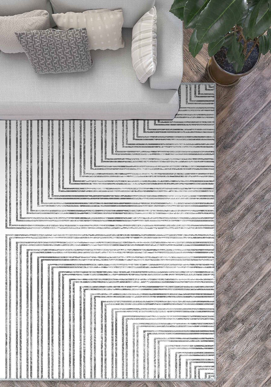 Kylie Grey Modern Striped Rug – Contemporary Elegance for Your Space