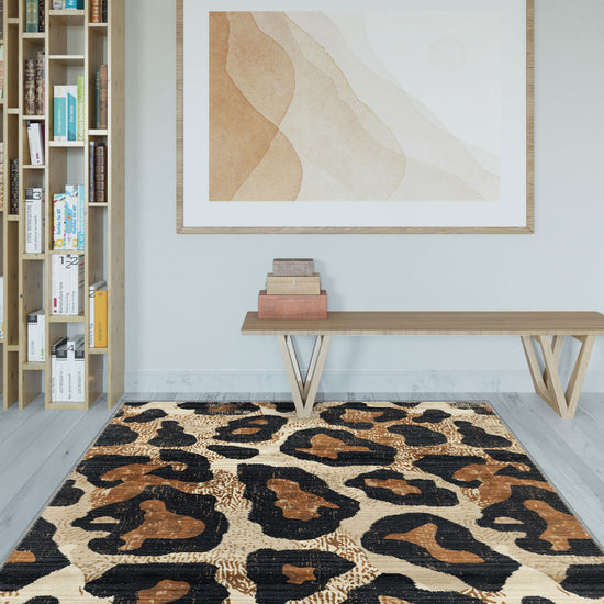 • Eye-Catching Animal Print: Featuring a dynamic leopard print in earthy tones, this rug adds an exotic flair to any room.
