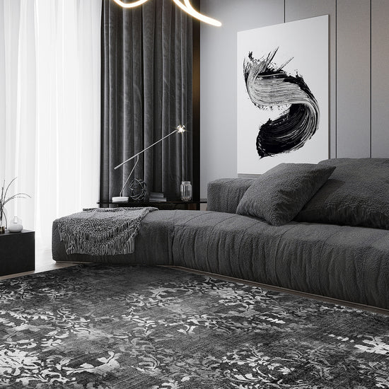 Monochrome never goes out of style, and this rug proves why. The deep black canvas suggests strength and grounding, while the white marble veins break through like lightning, energising the entire design. The black rug element grounds interiors with sophistication, while the marble-inspired detailing adds movement and light. The result is a rug that feels both modern and timeless, luxurious and practical.