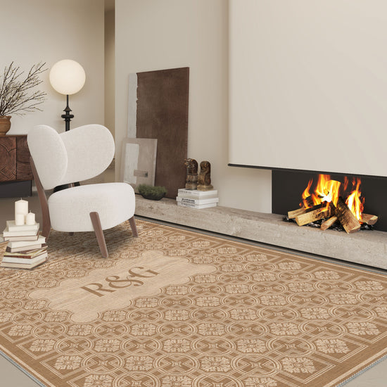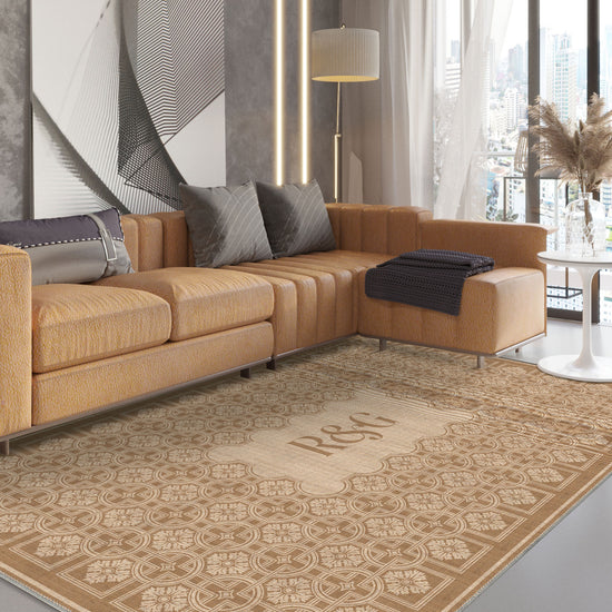 Marisa Beige Customizable Monogram Rug – Timeless Elegance with a Personal Touch