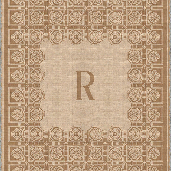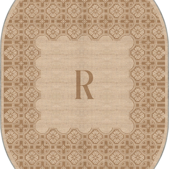 The Marisa Beige Customizable Monogram Rug combines intricate design with personalized charm, offering a luxurious and unique way to elevate any room. Featuring an ornate border with delicate geometric patterns, this rug centers around a customizable letter monogram, making it the perfect statement piece for classic, modern, and transitional interiors. Its neutral beige tones ensure it complements a wide variety of color schemes while offering both elegance and versatility.