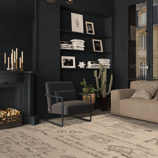With a warm, parchment-toned base and handwritten scripts that feel plucked from the pages of love letters and travel journals, the Memora Document Indoor Outdoor Rug brings soul and storytelling into every corner of your home. Its vintage passport stamps, café scribbles, and charming city names evoke wanderlust without ever leaving the house. Think of it as a canvas for your memories, set beneath your feet.