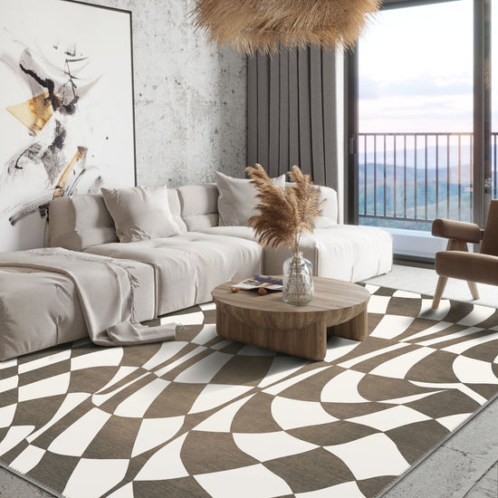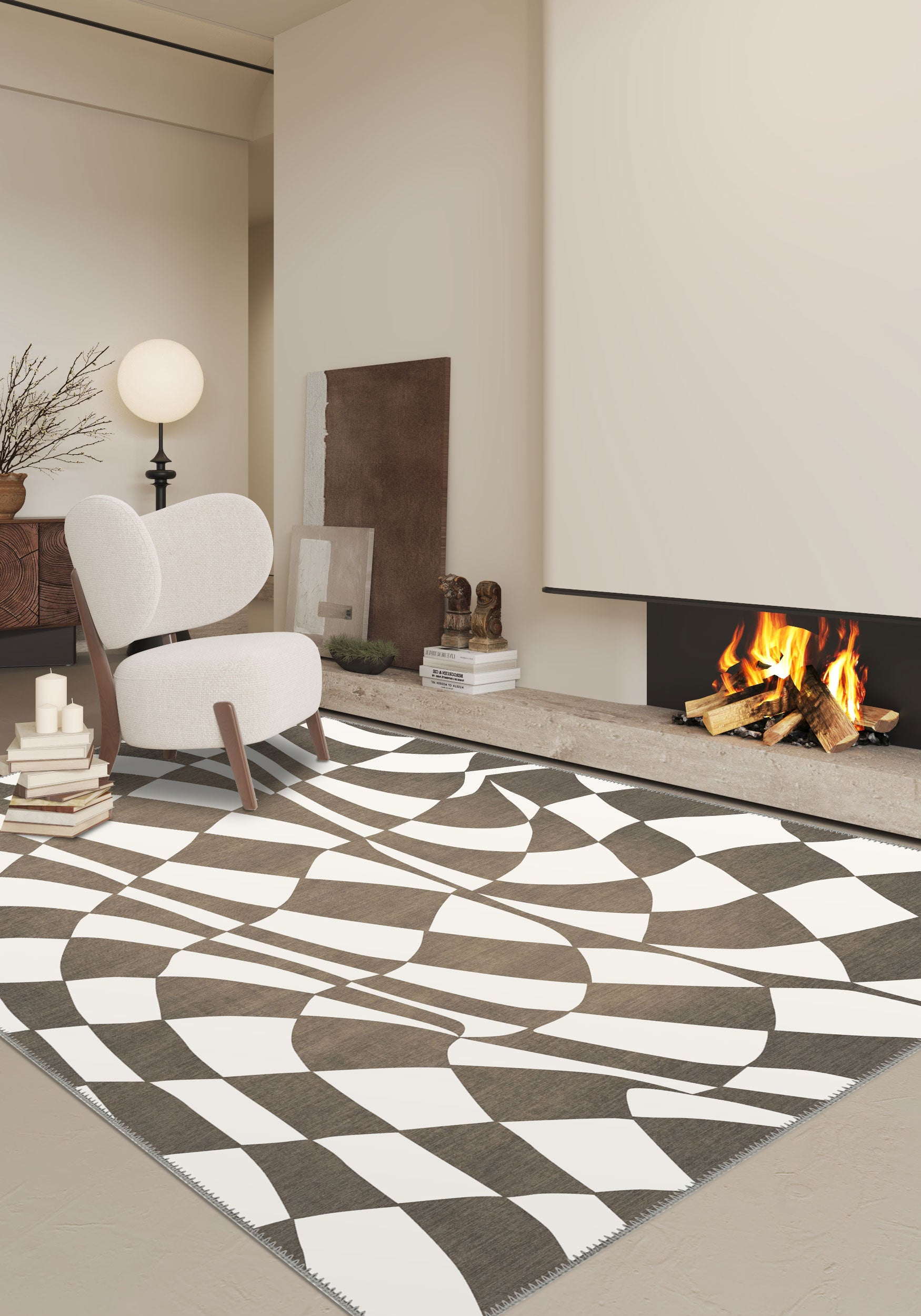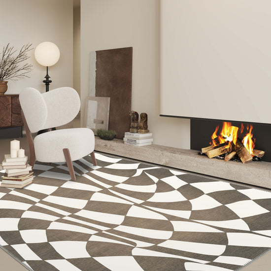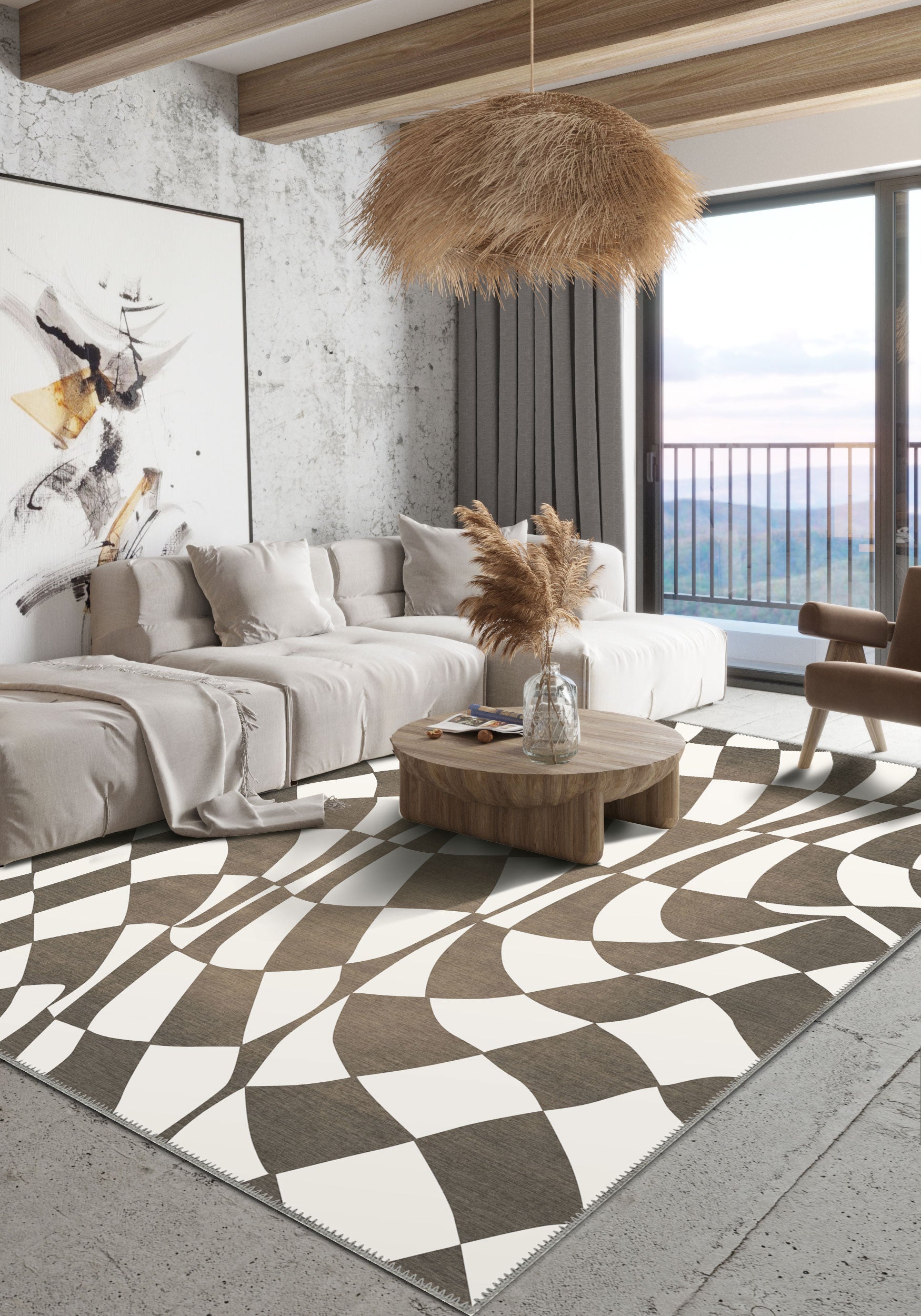 Mini Checkered Brown Rug – Bold Design with a Modern Twist