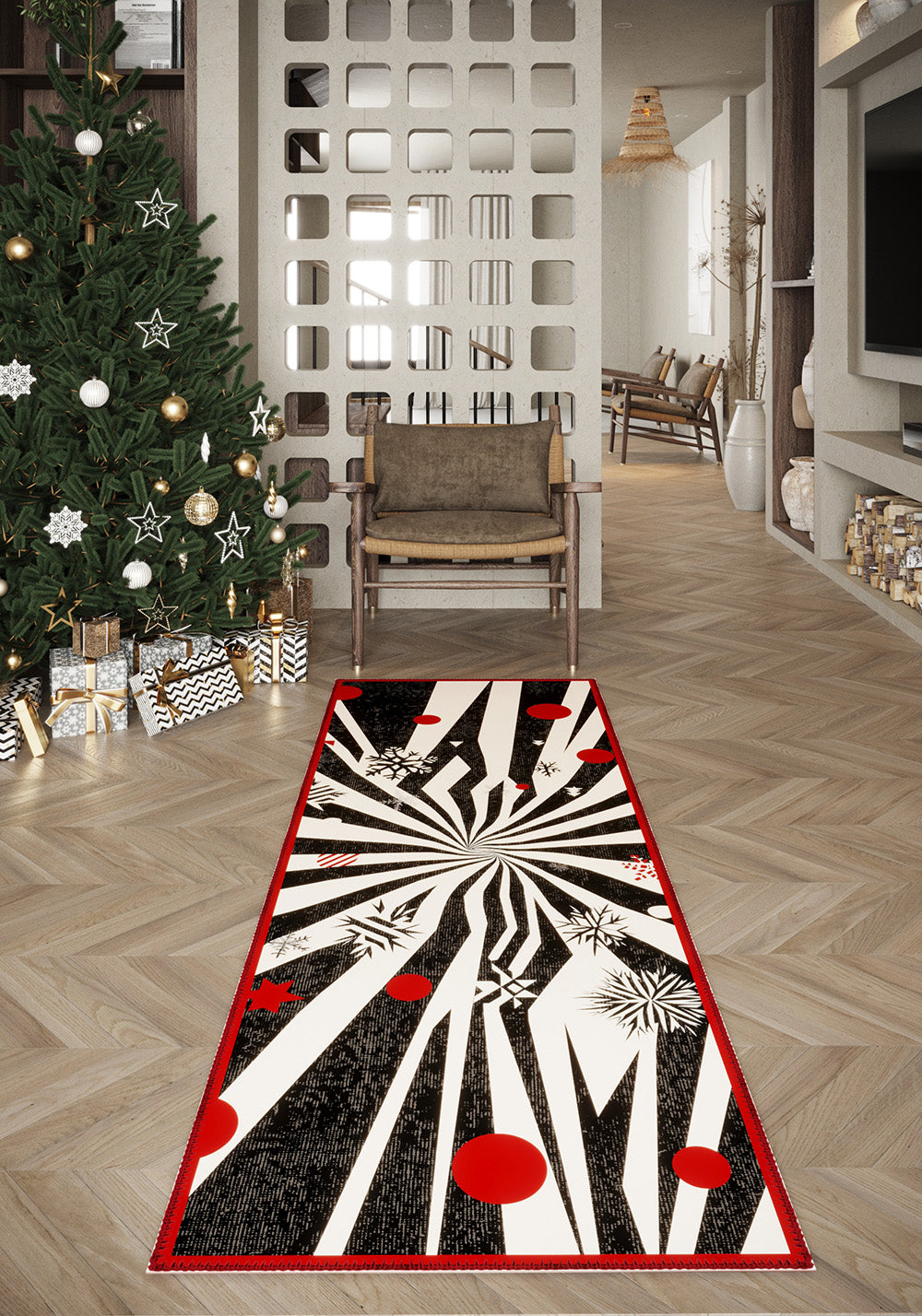- Living Rooms: Create a contemporary Christmas vibe in your living space with this bold and artistic rug.