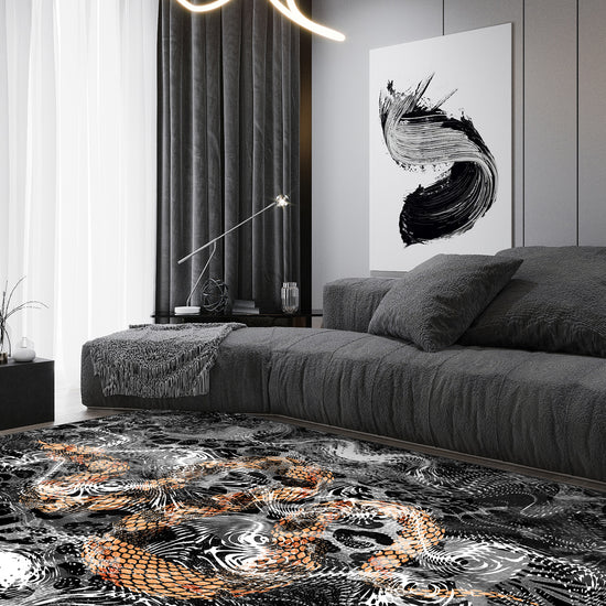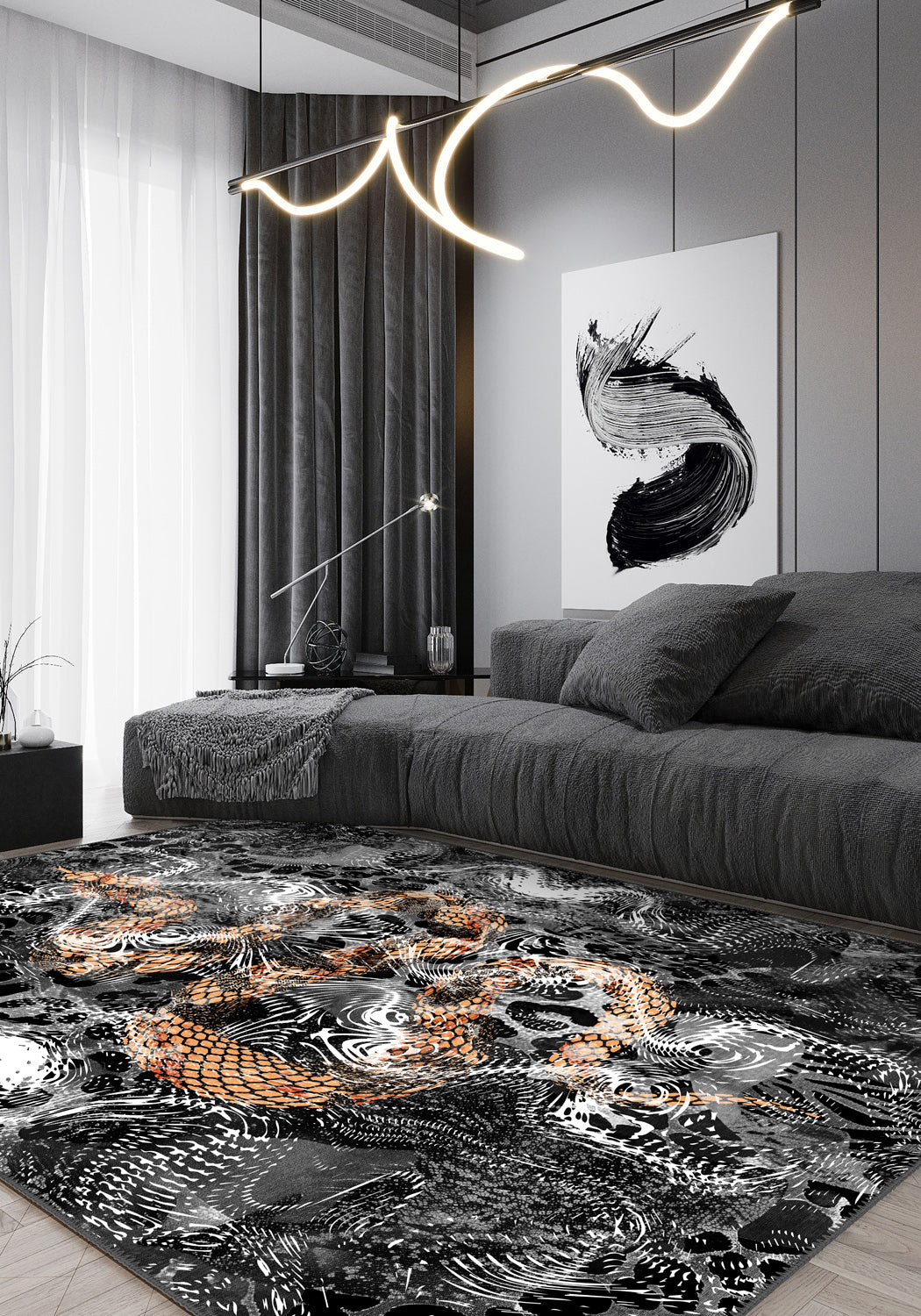 The layers. The movement. The barely-there but unmistakable presence of a coiled serpent woven through distorted animal forms and digital chaos. It’s art. It’s fashion. It’s instinct. With Nyra, your floor doesn’t whisper—it purrs, hisses, and owns the room.