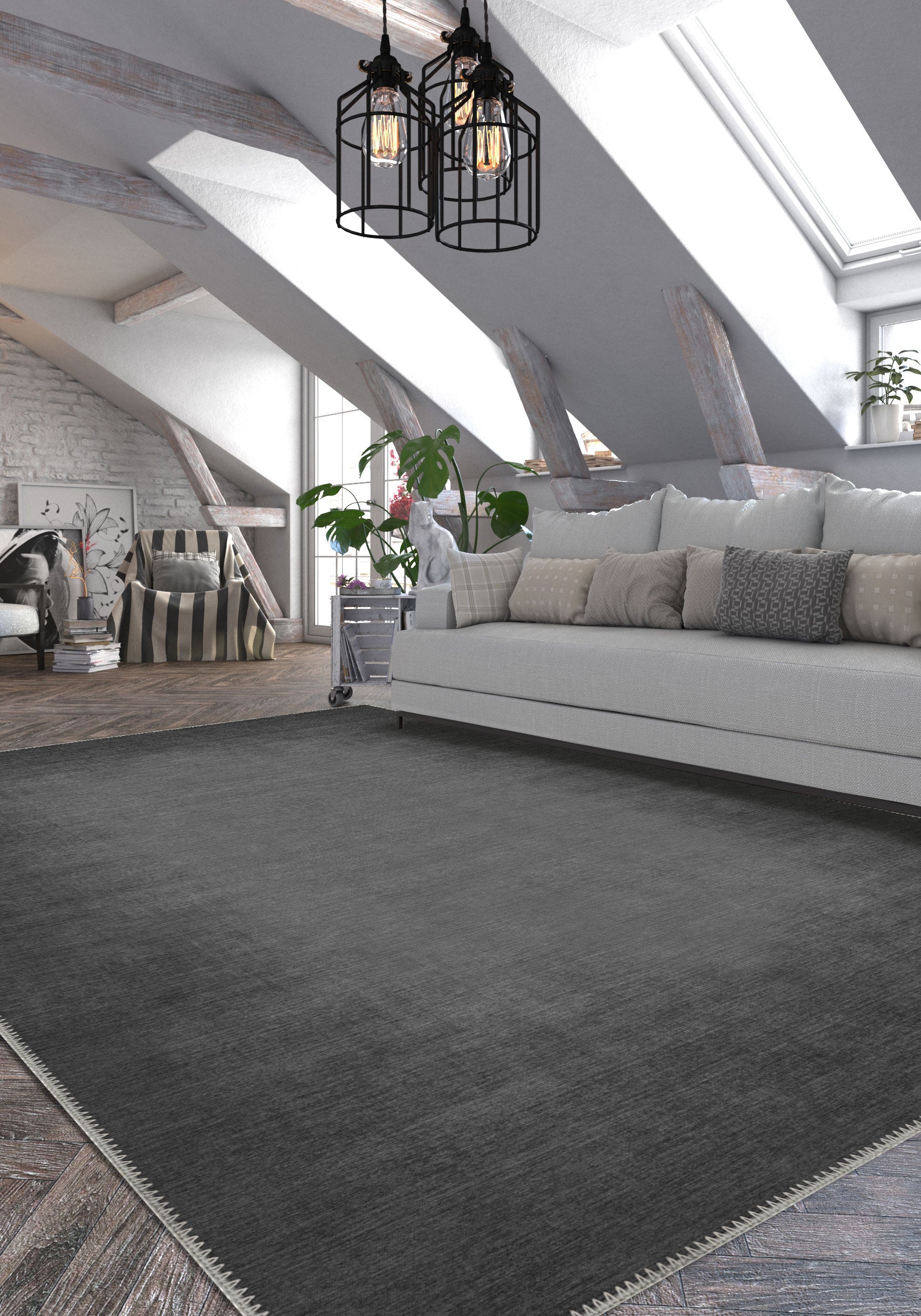 Olivia Grey Bordered Washable Rug – Modern Simplicity with Practicality