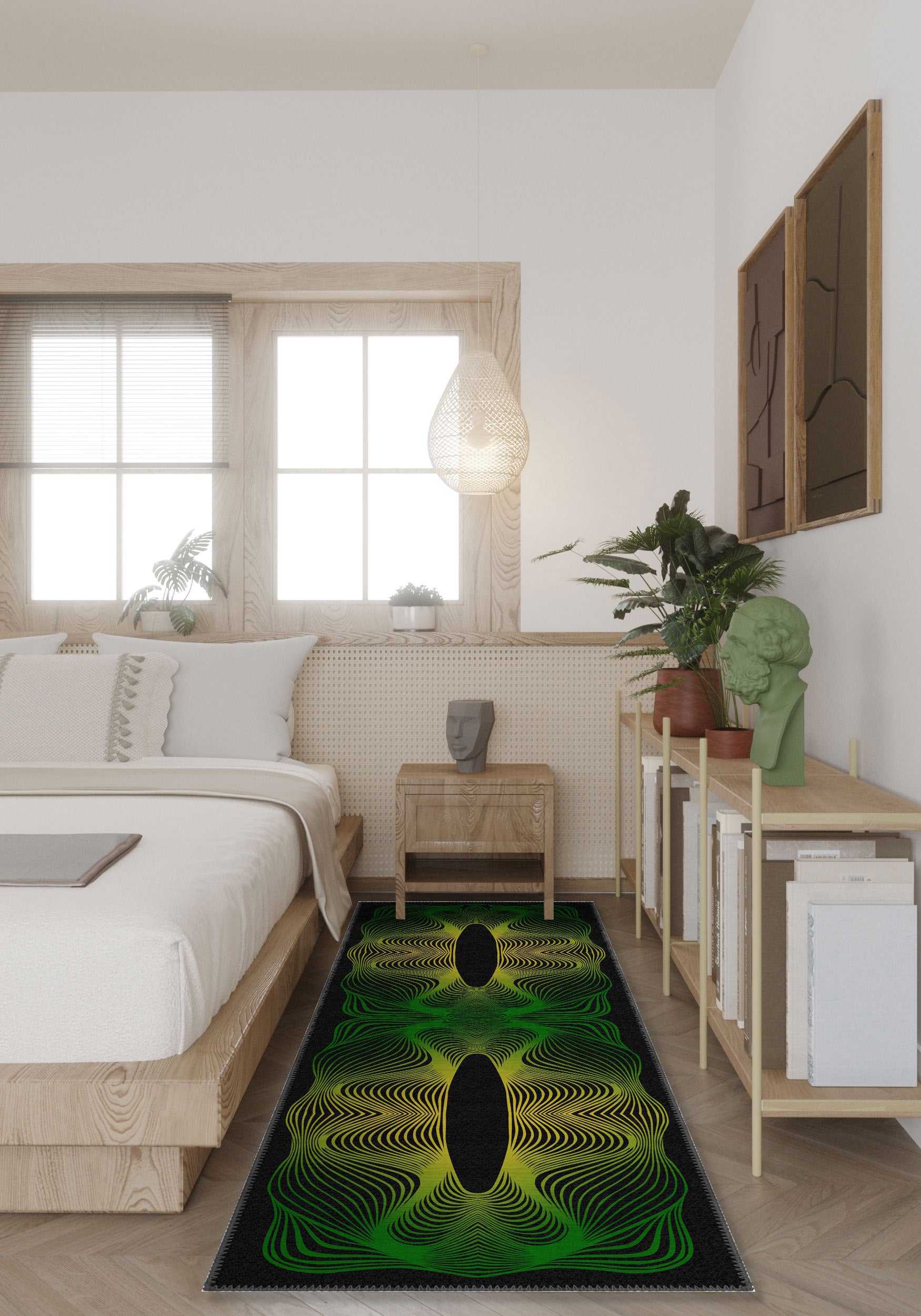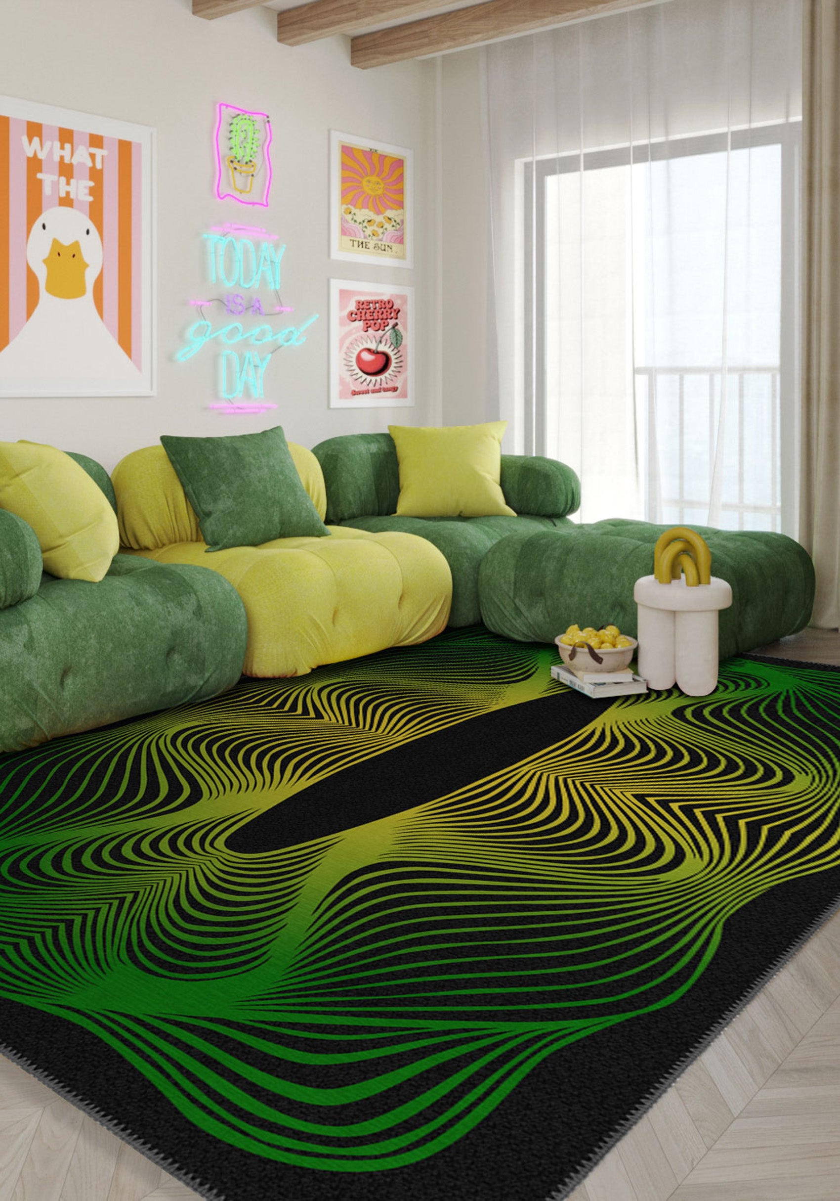 Optio Black Green Futuristic Rug – A Bold Statement for Modern Interiors