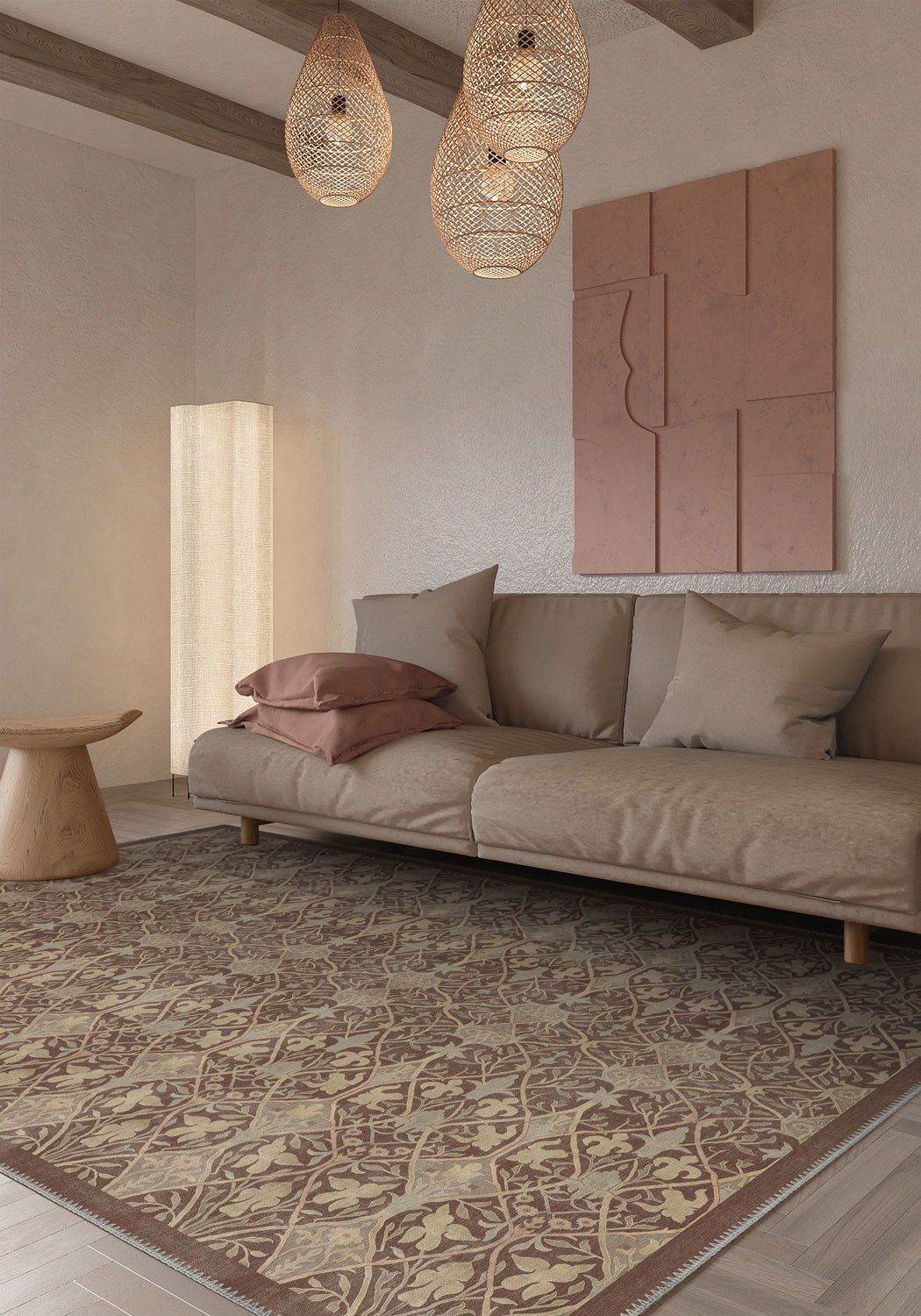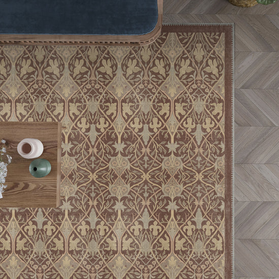 Transform your living space with the Prinka Mocha Mousse Rug, a timeless fusion of intricate patterns and rich, earthy hues. This elegant rug boasts a sophisticated floral motif with an enchanting mocha mousse colour palette, which is the colour of this year adding warmth and charm to any home decor.