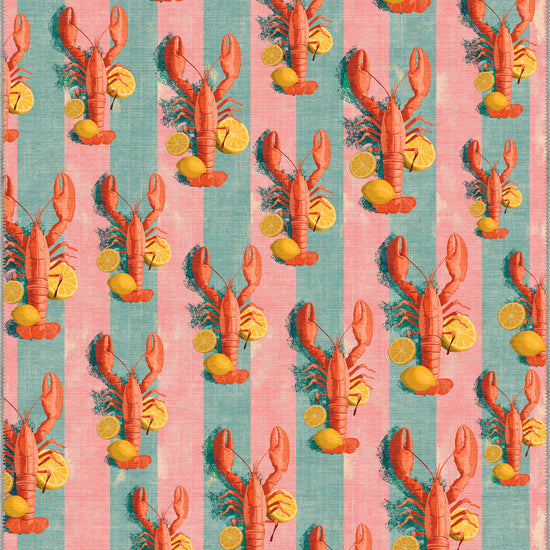 Bright, bold, and brilliantly kitsch—the Remy Lobster Summer Rug is a sun-drenched celebration of coastal charm. Featuring rows of cheeky red lobsters, zesty lemons, and painterly herbs on candy-striped pink and turquoise, this design feels like a retro beach shack on a carefree July afternoon. The colours are juicy and nostalgic, while the layout has a playful, vintage diner quality that instantly lifts the mood of a space. Whether you’re after quirky coastal, Mediterranean maximalism, or just a pop of fun—Remy delivers personality in spades.
