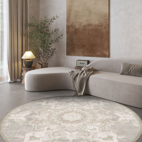Elevate your space with the Samuel Cream Medallion Rug. Featuring a timeless medallion pattern in soft cream tones, this rug brings a touch of refined elegance to any room. Perfect for traditional and modern spaces alike, its detailed design and neutral palette make it a versatile choice for any décor.